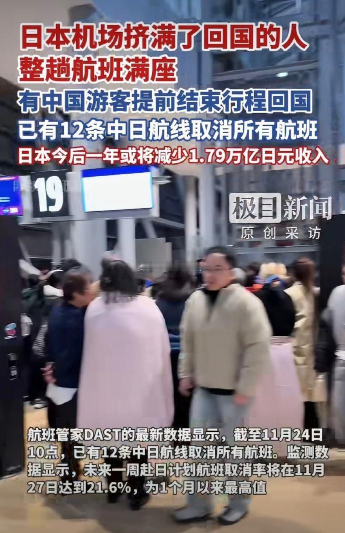 日本航线突然停飞十二条!一些人不听劝,现在傻眼了! 消息大家都看到了! 就在昨天,中日之间十二条热门航线,说停就停了! 结果呢?一些之前把提醒当耳旁风的旅客,直接被晾在了日本机场,进退两难,急得直跳脚!早知今日,何必当初呢? 这里就得说说了,为啥他们今天会这么狼狈? 事情早有苗头! 差不多一个月前,我们的外交部就发了正式提醒,话说得非常重:今年以来,日本那边治安状况直线下滑,针对我们中国人的案件接二连三地出,好几起袭击事件到现在都没破案!这还不够,他们国内现在闹熊灾,搞得一塌糊涂。 这旅游风险,那是肉眼可见地往上窜啊! 这还不算完。 几乎在同一时间,日本领导人那边,竟然还对我们台湾问题指手画脚,发表了极其错误的言论! 这严重伤害了两国人民的感情,直接把正常交流的氛围给破坏了。 在这种情况下,国家果断提醒大家:近期别去日本,已经在日本的务必注意安全。 这提醒,是随便说说的吗?当然不是! 紧接着,我们国内几大航空公司立刻跟上,行动非常迅速:凡是年底前飞日本的机票,全部开通绿色通道,免费退票或者改签! 国家怕老百姓吃亏,航司立马跟上保障,这力度,这决心,明眼人一看就懂! 当时政策一出来,航司客服电话瞬间被打爆,技术部门连夜增加坐席应对咨询。这说明什么?说明绝大多数同胞,是听得进劝、分得清轻重的! 可偏偏就有那么一小撮人,不信邪! 他们觉得:我花自己的钱,去哪儿是我的自由,你们就是危言耸听。行程都订好了,酒店机票都花钱了,舍不得那点损失。甚至还有人抱着天真的幻想:“倒霉事哪那么巧就轮到我?” 结果呢?现实给了他们一记响亮的耳光。十二条航线说停就停,一点不含糊,直接把他们的“侥幸心理”击得粉碎。 其实,这根本不是突然袭击。 有心人早就该注意到,自从官方提醒发布后,中日航班的班次就在持续减少。从之前每周上千班,一路下滑。航空公司不是傻子,早就根据安全形势和市场变化,把运力调到了更稳妥的韩国、东南亚航线。 连日本的全日空自己都宣布,要削减两成中日运力。这明明是双方基于现实的共同调整,哪里是什么意外? 所以说,那些现在被困在机场干着急的人,真怪不了别人。 当初退改政策窗口大开的时候,他们视而不见;官方苦口婆心的提醒,他们充耳不闻。非要把国家的安全保障当成耳旁风,这不就是典型的“不识好歹”吗? 这里必须把话说明白: 国家发布的每一个安全提醒,背后都是经过专业评估的,综合了各种风险因素。目的只有一个——尽全力保护我们每一位公民的人身安全和合法权益! 这不是限制你的自由,这是在给你兜底,是实实在在的护身符! 你把护身符扔了,出了事能不慌吗? 这些年,大家生活好了,出去看世界是好事。但玩归玩,不能把脑子玩丢了,把安全意识玩没了。 理性出行、听从官方指引,这是最基本的常识,也是对自己、对家庭负责的表现。 你花自己的钱,爱去哪儿,确实是你的自由。 这话一点没错。 但你也要记住:当你真的在海外遇到危险,叫天不应叫地不灵的时候,第一个站出来保护你的,永远是你的祖国! 你平时不把国家的提醒当回事,不把民族大义放心上,出了事又有什么脸面理直气壮地要求国家为你个人的任性兜底呢? 别忘了我们来时的路,别忘了先辈们的流血牺牲! 没有国,哪有家? 个人的那点“自由”和“任性”,在国家利益和民族尊严面前,根本不值一提! 希望这次滞留在机场的教训,能让所有人记住:家国情怀,永远是我们最硬的底气!