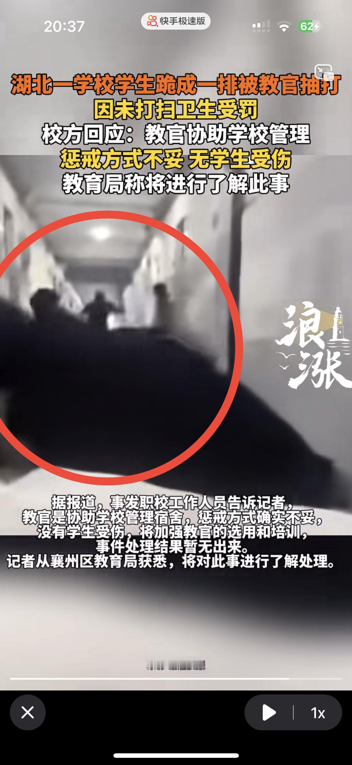 如果是他自己的孩子,他还下得去死手吗? 湖北一学校因为学生卫生没有打扫干净,居然让他们一个个排成一排,跪在地上,被教官一个个的抽打 这些孩子还都是中学生,仅仅是因为卫生没有做好,就下如此狠手,他们是犯了什么不可饶恕的错误了嘛?如果是自己的孩子,教官也会这样吗?真让人不能理解,这么侮辱性极强的惩罚方式,到底是为了惩罚学生还是为了满足自己那变态的权利?