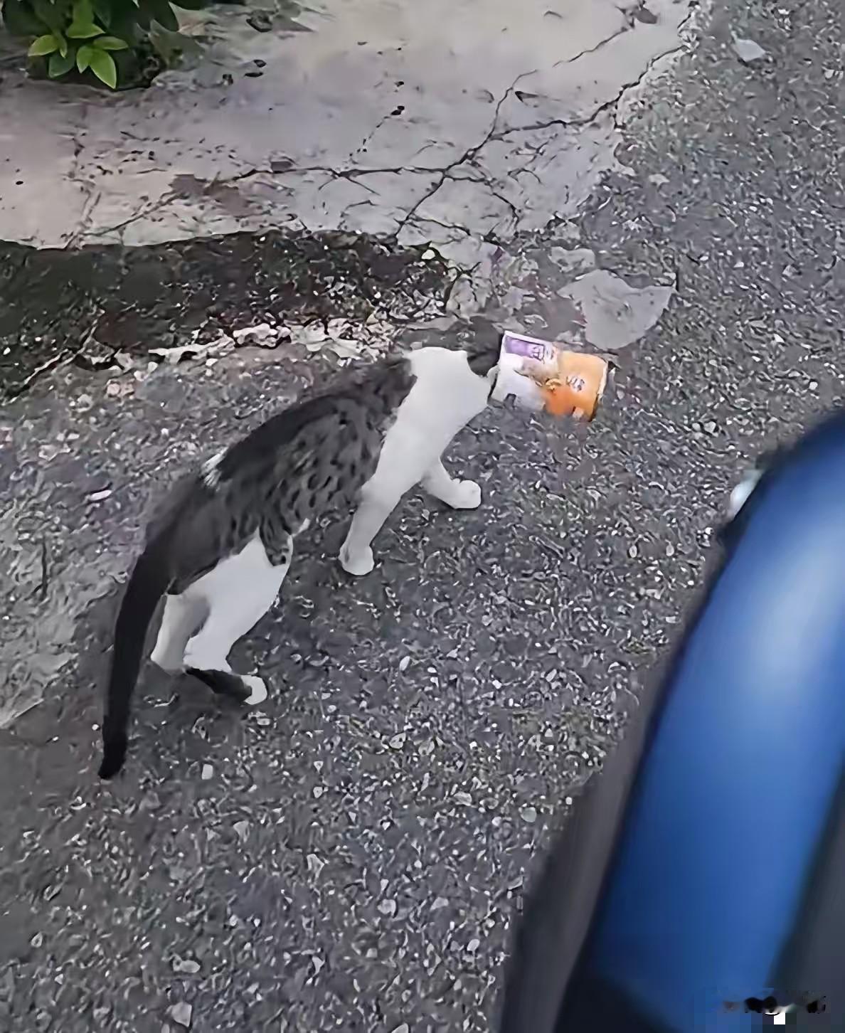 善良的大哥顿时心生怜悯,于是就想要帮助它,可铁罐套在猫咪的头上,容易导致它受伤,不能强行取出,大哥只好寻求路人帮忙,幸运的是在几个路人的帮助下,终于取下了那个铁罐。最终善良的大哥收养了这只可怜的流浪猫,相信在他的照顾下,这只猫咪也会越来越好的。