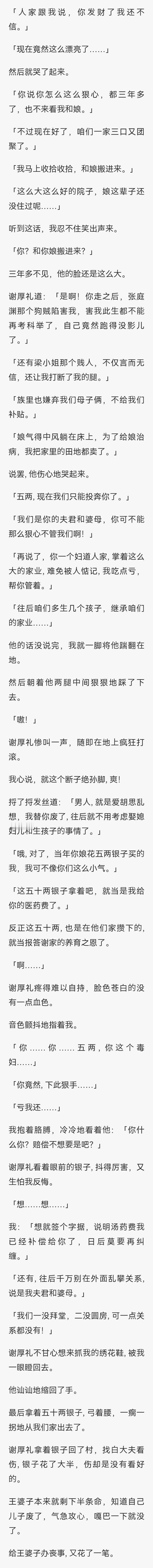 "婆母劈头盖脸地骂道:「不是你儿子,你当然不心疼!」「还不快请大夫去!我儿子要是有什么闪失,让你给他陪葬!」那可不行,陪葬不行的,我还没活够呢!连忙起身往外走。「婆母您别生气,我马上就去请大夫。」跑出去几步,又折了回来。「钱……」婆母丢给我一个钱袋子:「拿去!你可真是个讨债鬼!」 钱袋子落在手里沉甸甸的,铜钱碰撞的脆响混着婆母的怒气,在闷热的屋子里撞出回声。 我捏着布袋边缘,指腹被粗糙的麻布磨得发疼——明明是张秀才砸了夫君的头,怎么挨骂的人反倒成了我? 跨出门槛时,日头正毒,晒得院子里的青砖发烫。 张秀才还站在那棵老榆树下,月白色的长衫皱巴巴的,手里攥着半块啃剩的绿豆糕,见我出来,眼神躲躲闪闪,倒没了先前砸人时的横劲。 「嫂夫人,」他忽然开口,声音细得像蚊子叫,「厚礼兄的事,我……我也有责任,我随你一起去吧?」 责任?我差点笑出声——早干嘛去了?刚才在屋里掀桌子砸脑袋的时候,他怎么不说责任? 正要开口,院墙外传来「噔噔噔」的脚步声,李大哥扛着锄头回来了,黝黑的脸上全是汗,看见张秀才,眼睛一亮。 「嘿,秀才郎,你咋在这儿?」李大哥把锄头往墙根一靠,大步走过来,目光在张秀才身上溜了一圈,最后停在他微微蜷着的左脚上,「你这脚咋了?」 张秀才往后缩了缩:「没、没事……」 「没事?」李大哥蹲下身,一把抓住他的脚踝,「都肿成这样了还没事?我看看!」 「啊!李大哥你干什么!」张秀才疼得龇牙咧嘴,挣扎着想抽回脚。 李大哥手劲大,按住他不放:「乱叫什么,别动!」他三两下扒下张秀才的靴子,只见那只小脚趾又红又紫,像是被重物碾过似的。 「这还叫没事?」李大哥皱着眉,直接把张秀才往肩上一扛,「我带你看大夫去!伤了脚指头,可大可小的——你是要考功名的人,总不能将来当官了,一瘸一拐地上朝吧?」 张秀才被扛得七荤八素,手脚在空中乱挥,活像只被拎住脖子的鸭子,嘴里还嘟囔着:「我是要去看厚礼兄……」 「厚礼兄有你嫂夫人呢!」李大哥拍了拍他的屁股,「先管好你自己的脚!」 我站在一旁,看着张秀才那副狼狈样,想起刚才在屋里受的委屈,心里忽然敞亮了些。 学着李大哥的样子,我走上前,在张秀才的屁股上轻轻掐了一把。 「说谢谢了吗?」 张秀才大概是被掐疼了,也可能是被扛得头晕,闷声闷气地从李大哥肩上挤出一句:「谢谢李大哥……还有,嫂夫人!」 李大哥扛着张秀才大步流星地往村医家走,阳光把他们的影子拉得老长。 我捏了捏手里的钱袋子,铜钱的凉意透过布面传来。 婆母的骂声好像还在耳边,可看着远处那两个一高一矮的背影,心里那点委屈,竟像被风吹散的云,慢慢淡了。 都是邻里街坊,计较那么多做什么? 我转身往村医家走,脚步轻快了些——夫君还等着大夫呢,可不能耽误了。