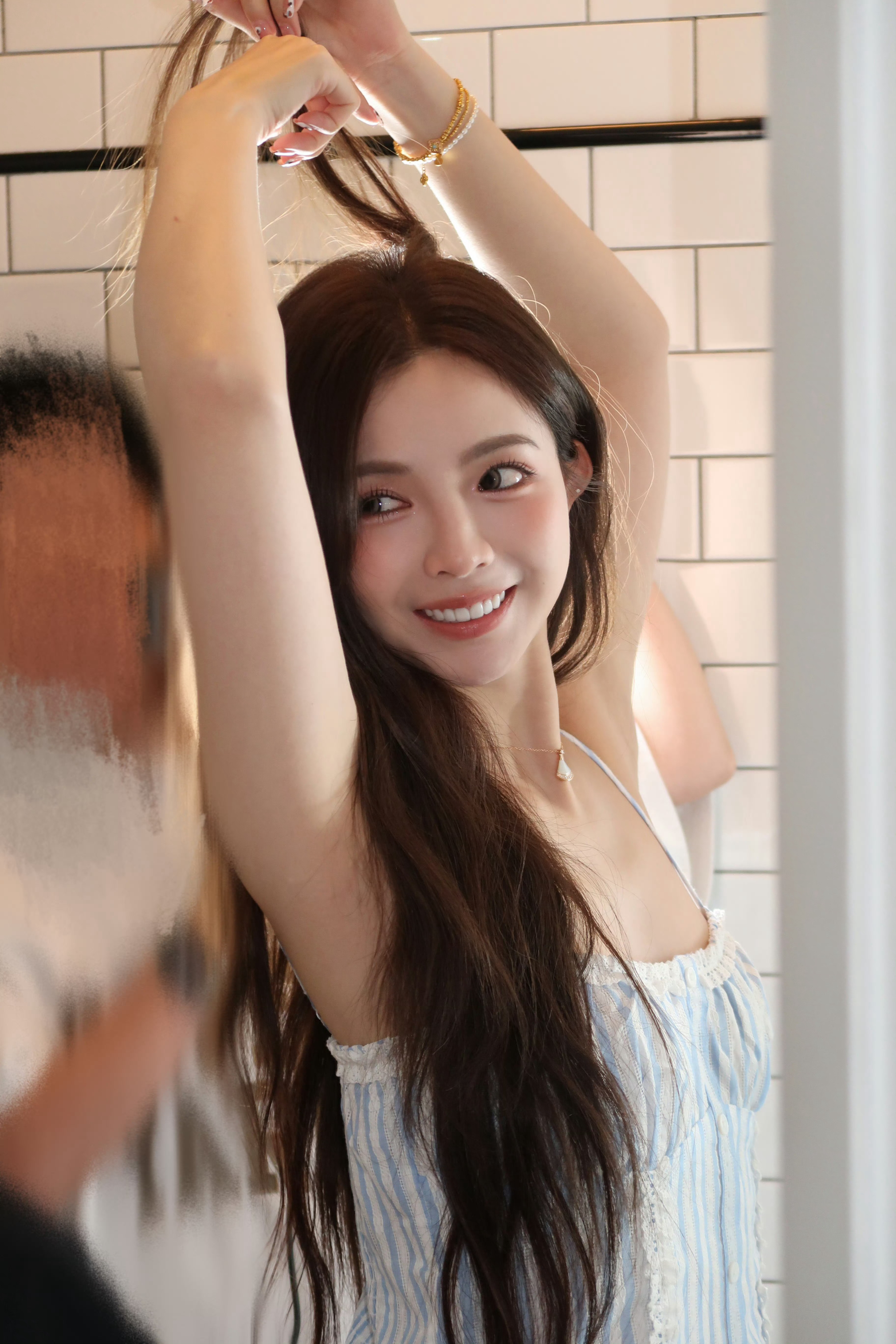 小姐姐一副国泰民安,贤妻良母的面容,搭配牛仔套装,真绝~