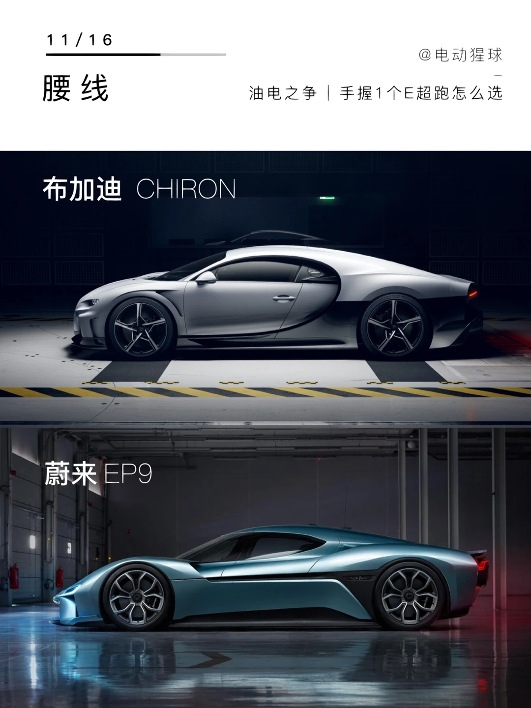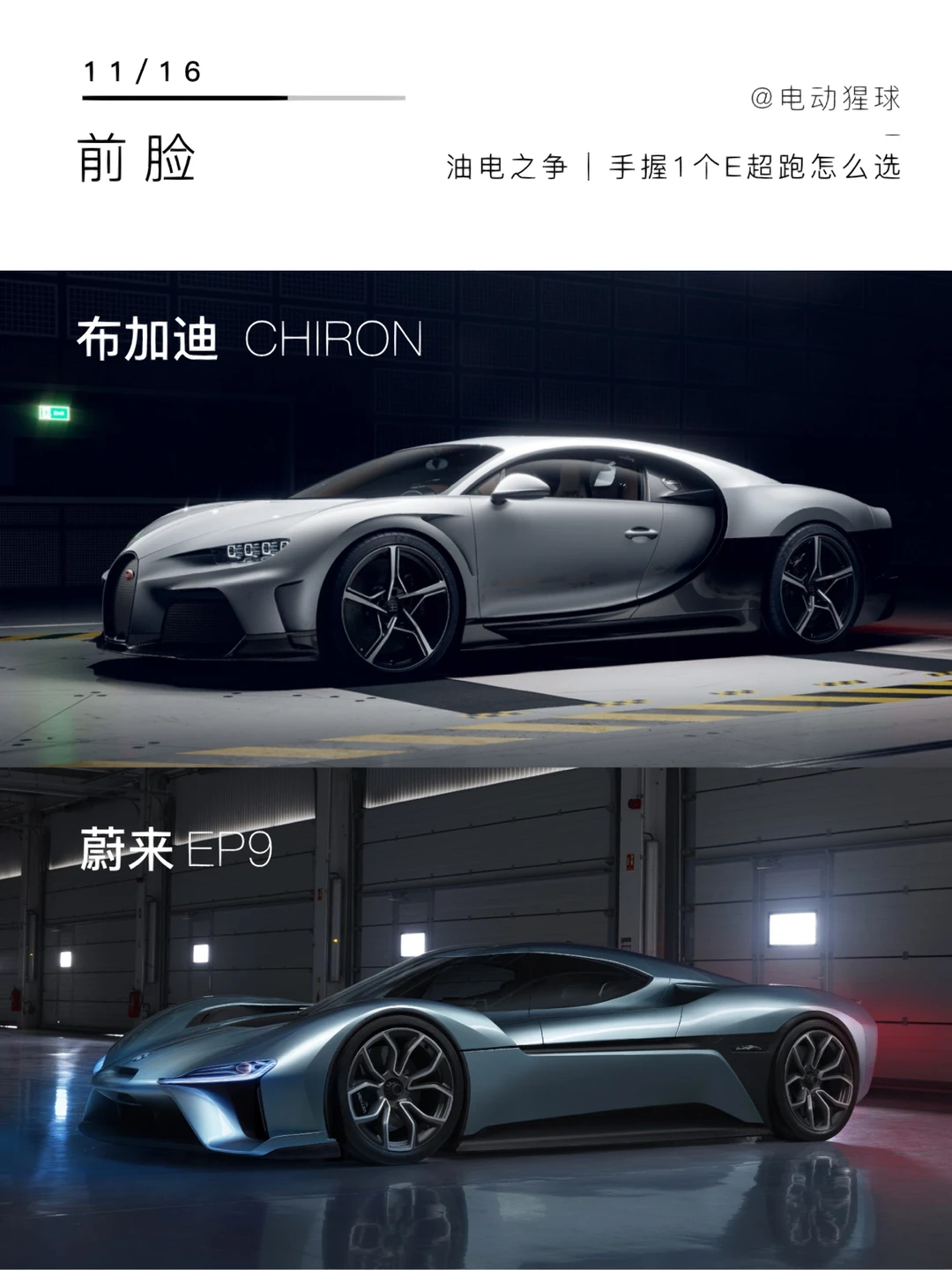 油车时代限量王者布加迪,对上纯电赛车蔚来EP9,手握一个小目标,你怎么选?