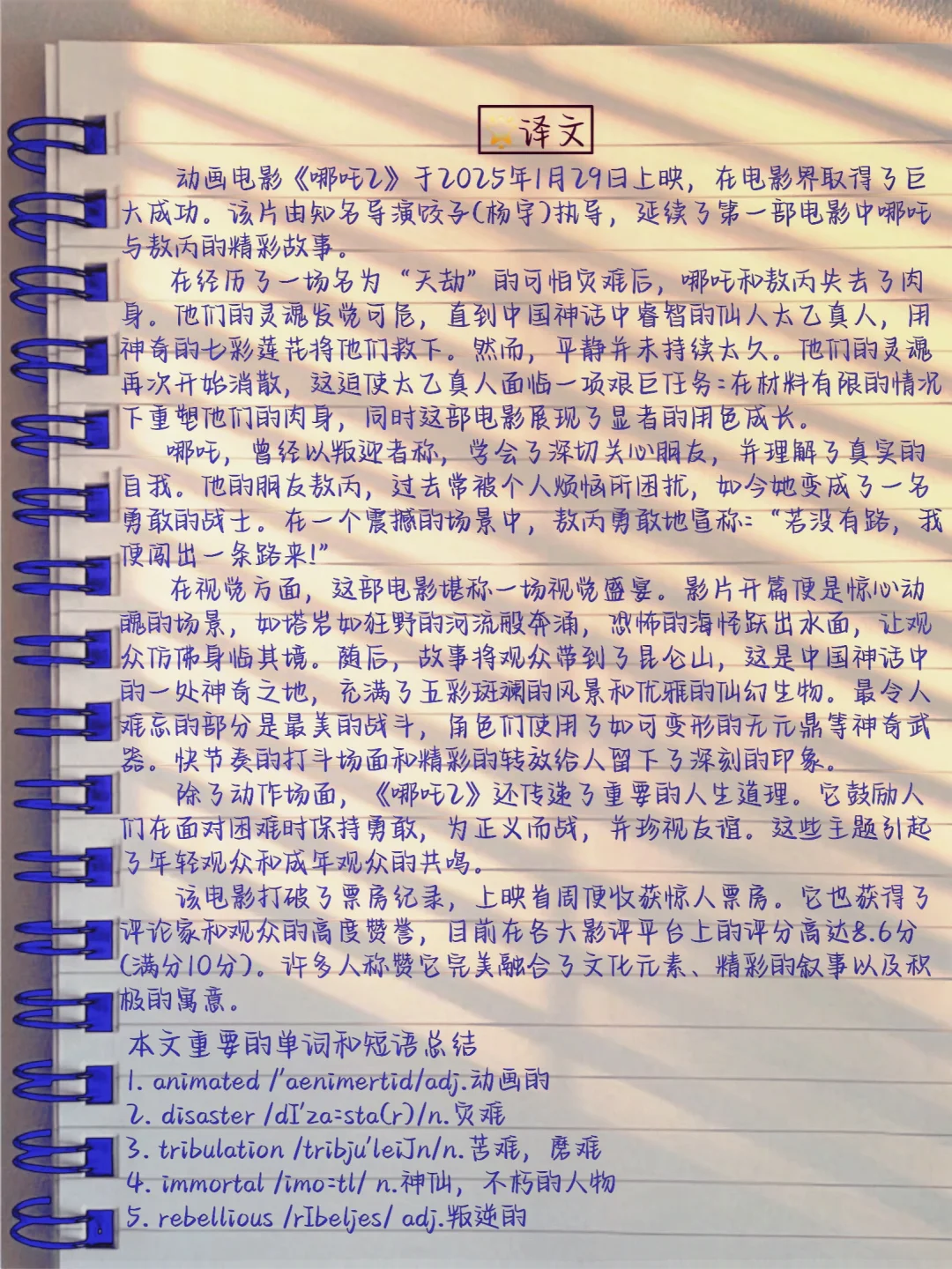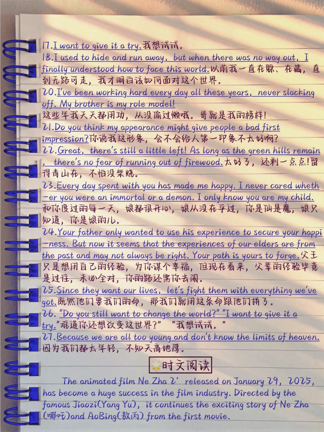 英语学习 学英语 英语 英语作文 英语写作 可以写进作文里的神仙句子 必考考点我会被文字打动 作文摘抄 哪吒之魔童闹海 春晚 热点 作文素材