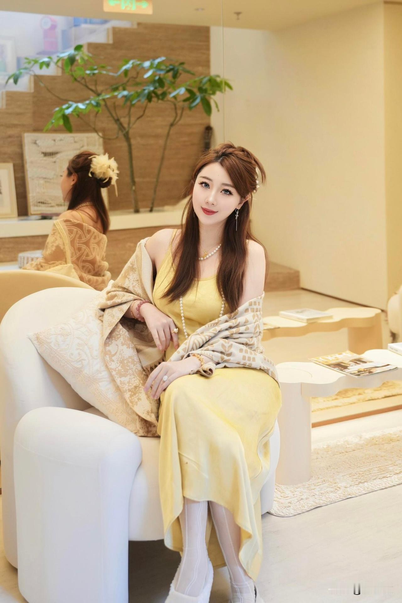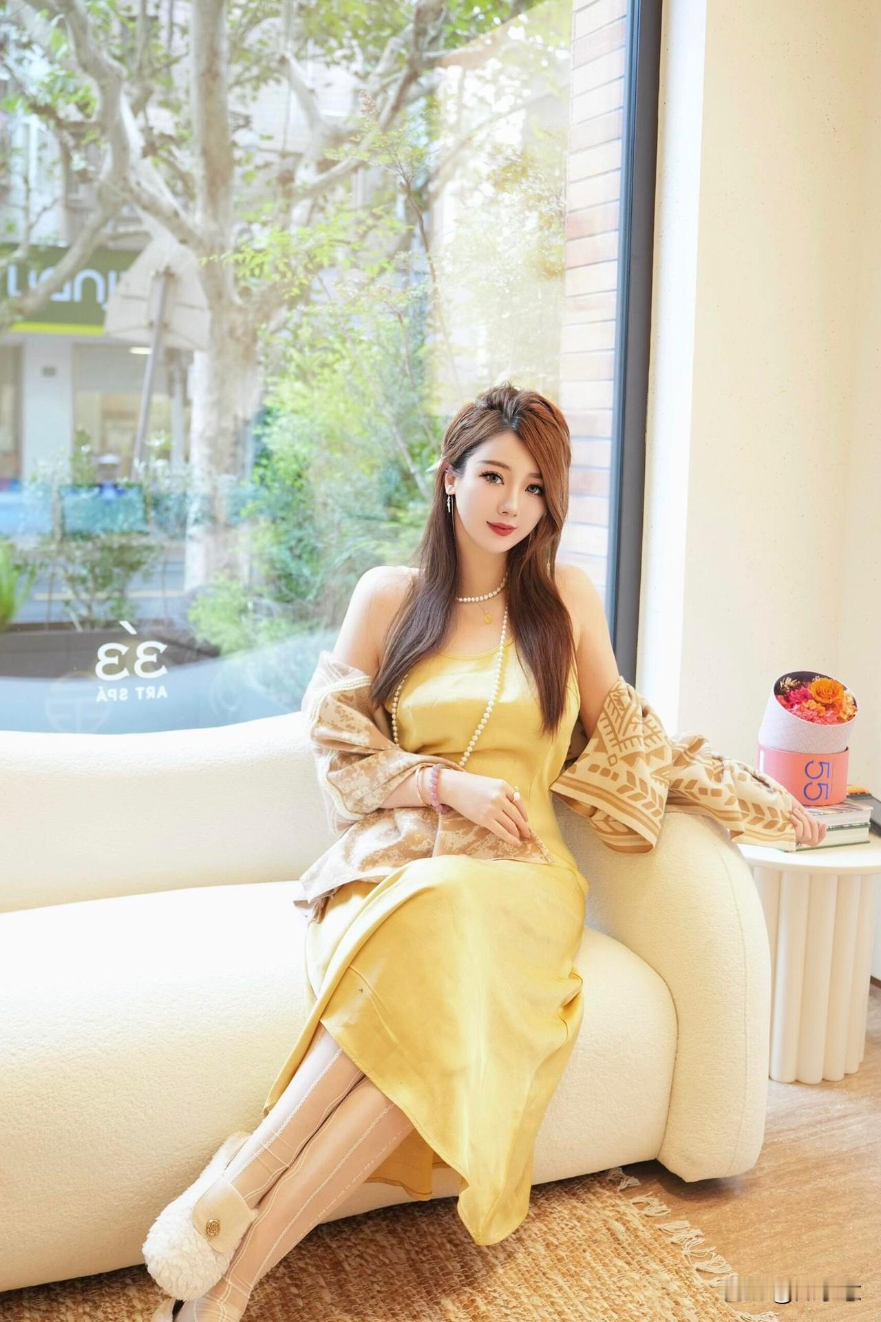 优雅复古风,黄裙配珍珠,尽显女性魅力!