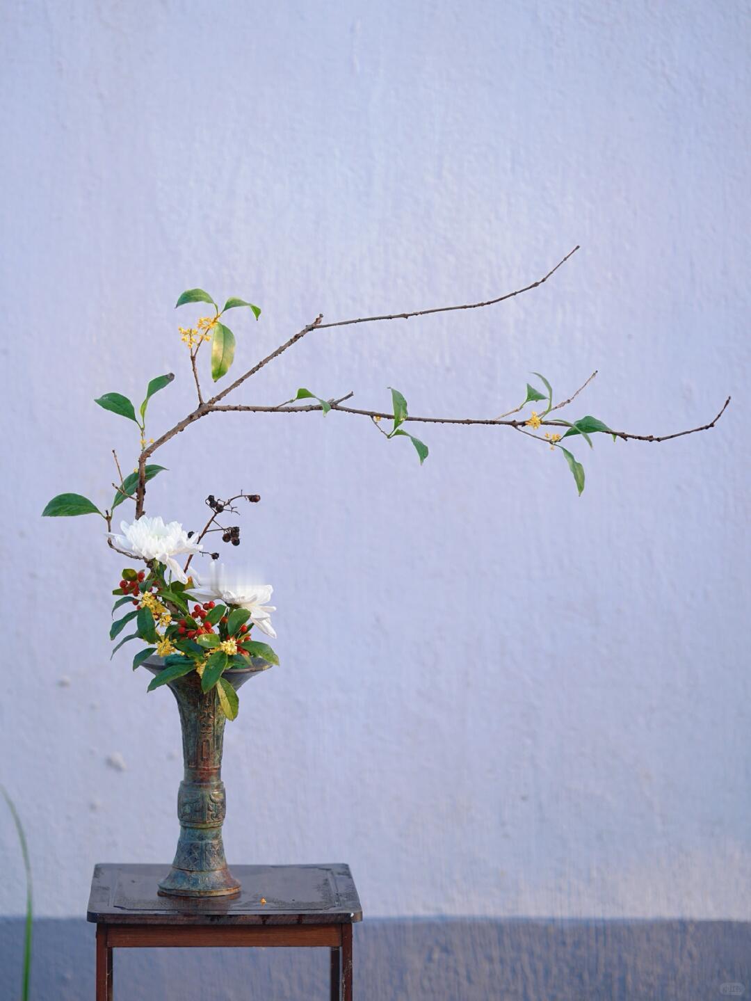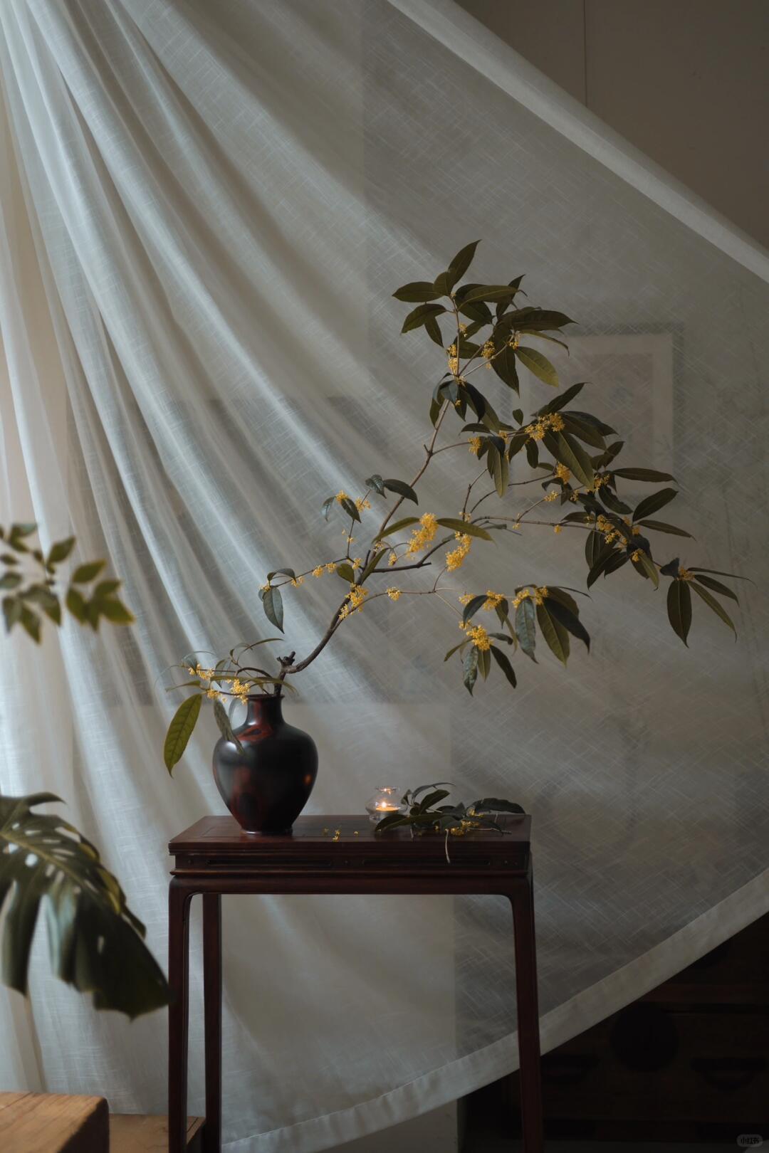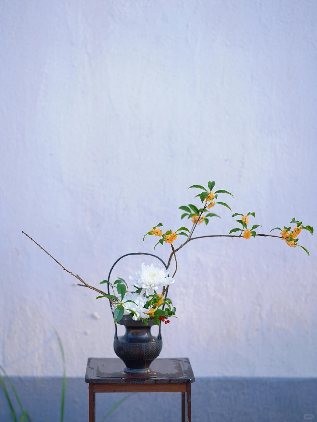 秋桂撷枝入瓶,香远韵清,疏影错落藏留白之美。老祖宗的插花偏爱,简而不素,雅而不奢,把东方雅致与秋日温柔藏于一室芬芳。