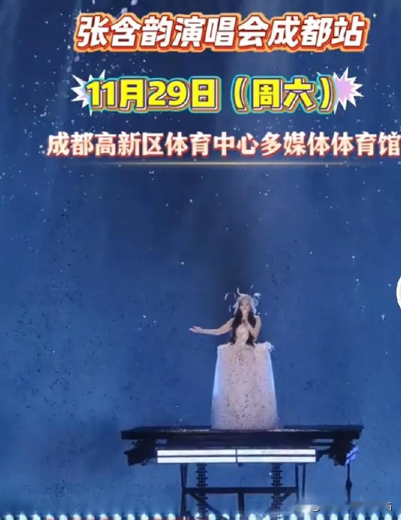 张含韵成都演唱会,11🈷29号高新体育广场不见不散! 这次是以“归韵”为主题,以“韵”串联不同角色,带来一场跨越十九年的青春重逢与自我革新。 票价:388元、588元、788元、988元。 舞美设计:以“人生戏台”为造型,融合“镜与窗”的空间诗学,镜与窗,为方圆;在舞台上,有镜、也有窗;“镜”向内看,是浪漫主义的自我表现,“窗”向外看,是现实主义的纪实叙述。 交通指南:可乘坐地铁6号线至金融城东站,步行约1公里到达。
