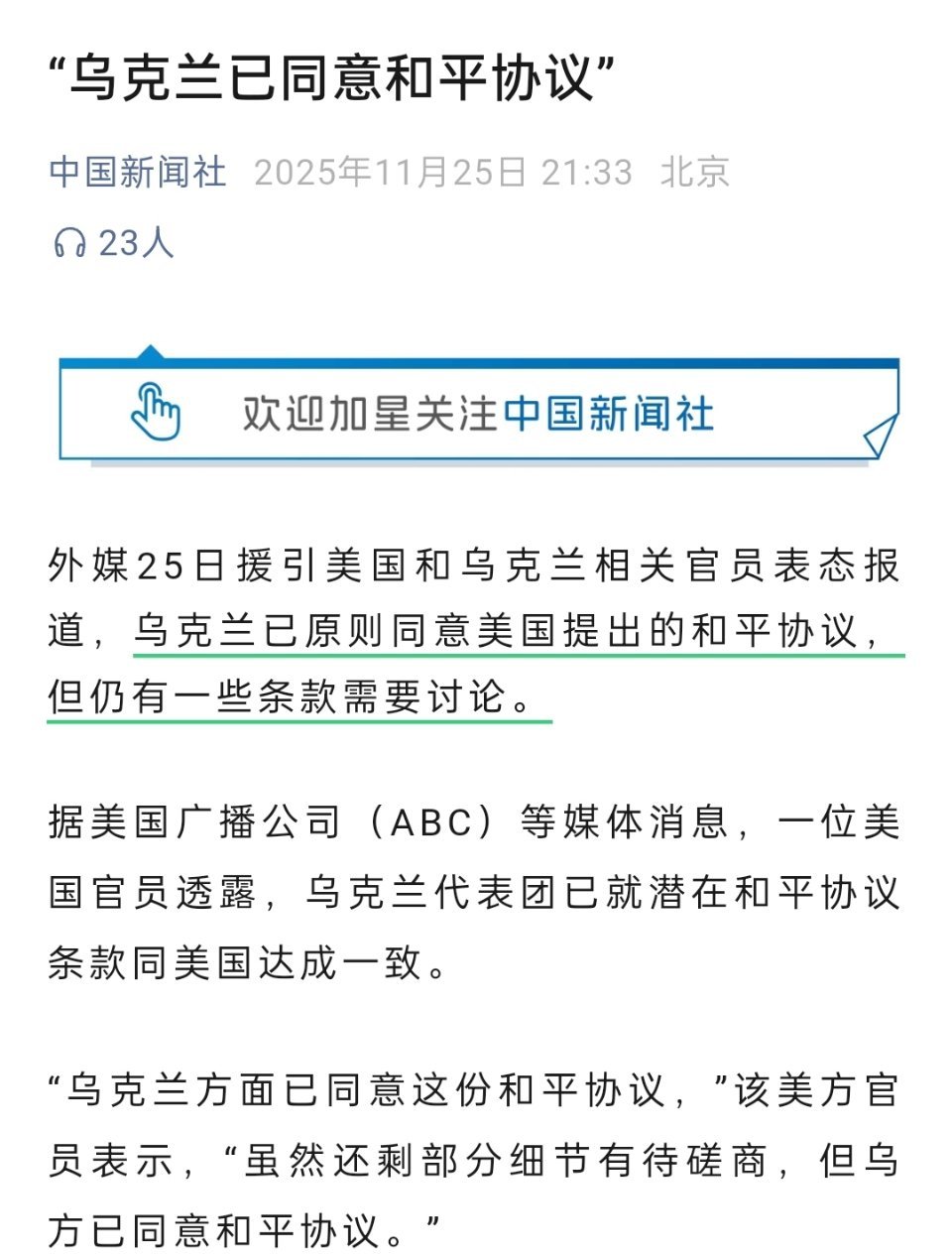 乌克兰又同意美国提出的和平协议了。说实话,我已经脱敏了,看看这次能坚持几天。当你看到还剩部分细节有待磋商,就知道没多大希望。泽连斯基烽火戏诸侯都几次了?