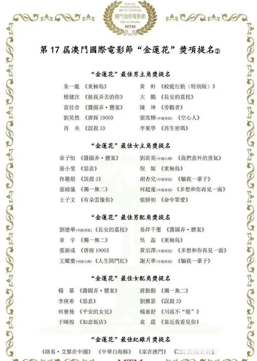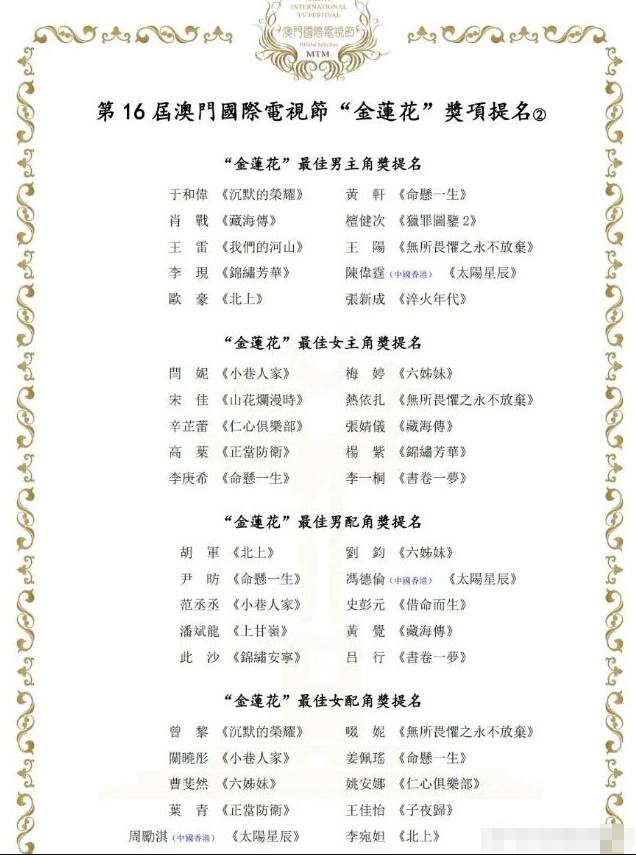 澳门金莲花奖来了! 本届提名基本全是内地明星,杨幂凭借《酱园弄》提了最佳女配,男主提名也异常豪华,朱一龙,刘昊然,檀健次,大鹏。雷佳音,陈坤等,在内娱还没见过这么豪华的提名阵容,内娱得奖提名不会过于豪华,都是热门和冷门穿插着提名,金莲花奖是直接把大热门全放一块,不过澳门的影视娱乐业不发达,所以这个奖含金量不太高。