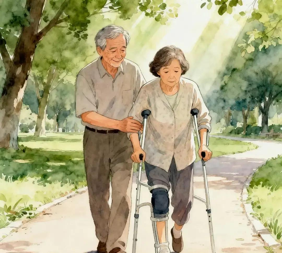 张先生三十出头那年,媳妇突然脑溢血半边身子动不了,医生摇头说希望不大,他当场把片子揣兜里,回家把床挪到窗边,开始学按摩、熬中药、借钱买康复器械,每天五点起床先给媳妇翻身拍背,再扶着她蹭着墙根挪步,两年下来媳妇能拄着高脚凳走两步,他把工资全砸在扶手和防滑垫上,邻居笑他傻,他说人还在家就完整。 二十多年过去,老张腰也弯了,可每天傍晚照旧牵着媳妇在小区一圈圈慢遛,步子比蜗牛还慢,却从不松手,有人把视频发上网,点赞飙到百万,他摆摆手:两口子嘛,就是搭把手走到黑。 平凡日子最考验骨头,守得住承诺,才算把爱情活成了日子。