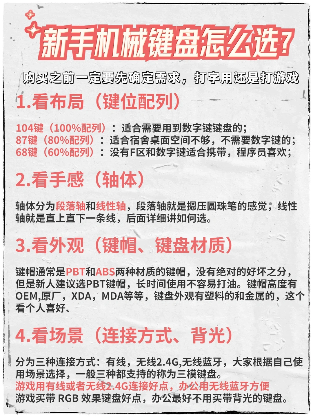 1️⃣选键盘前一定要明确自己的需求哦,是打游戏用还是打字用。
