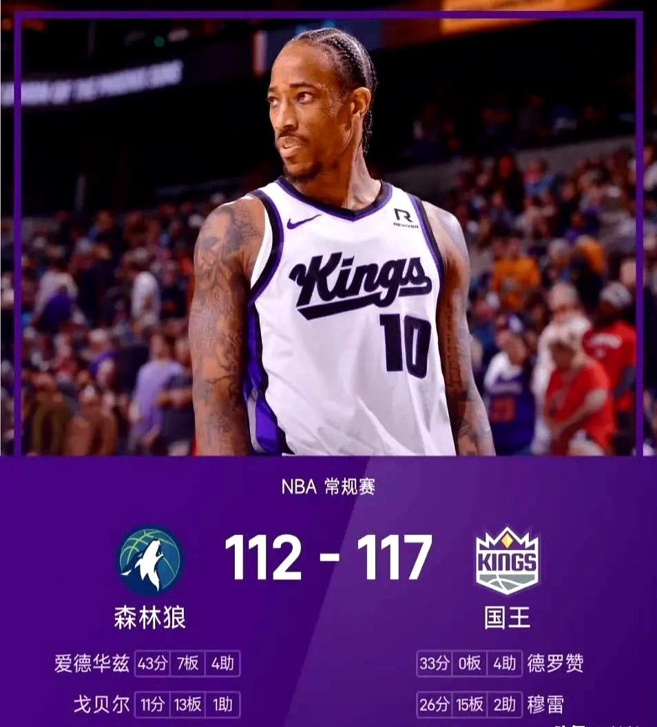 爱德华兹爆砍43分,森林狼竟然输了。 穆雷回来真是不一样了。国王这防守立马提升