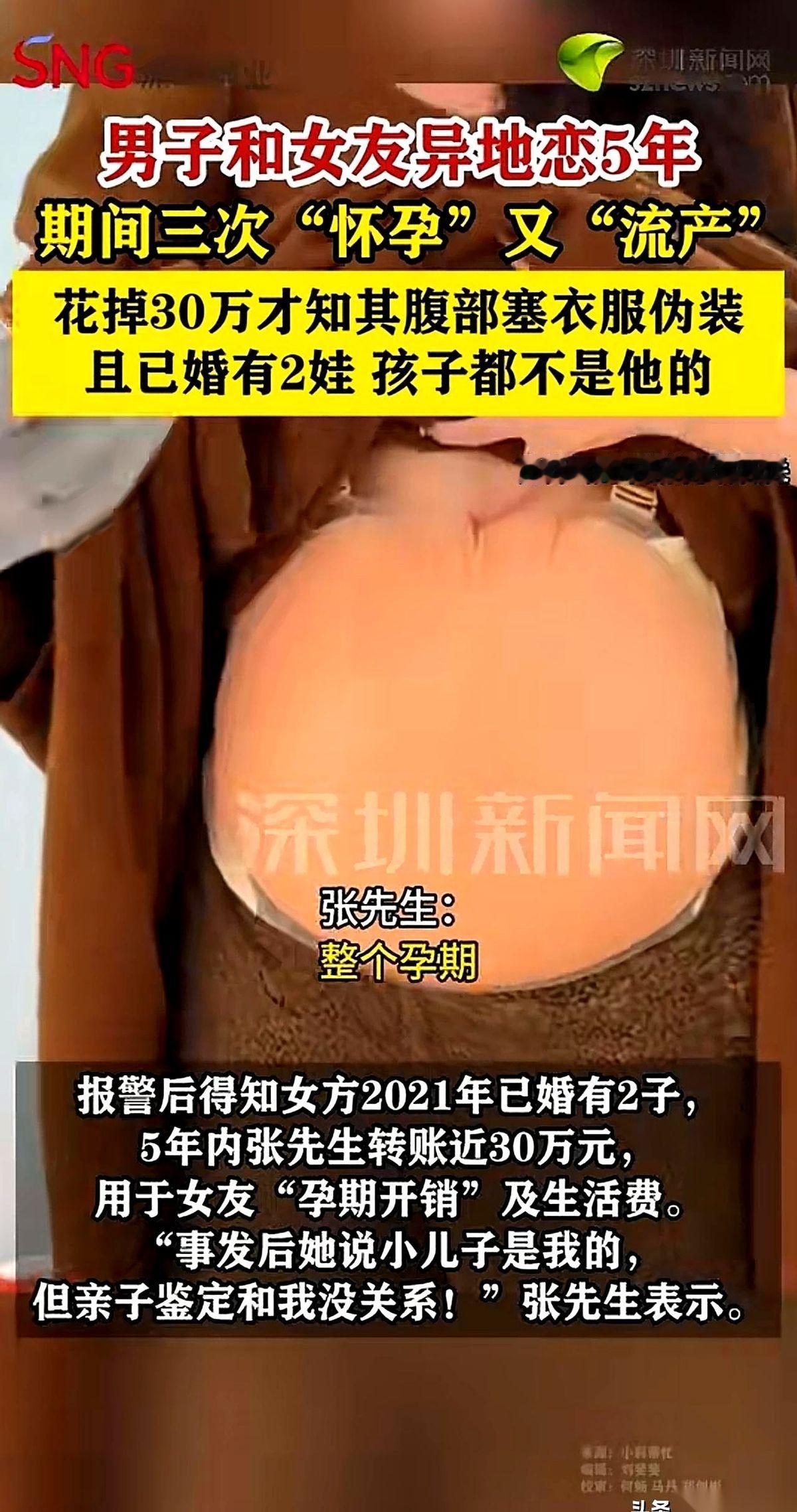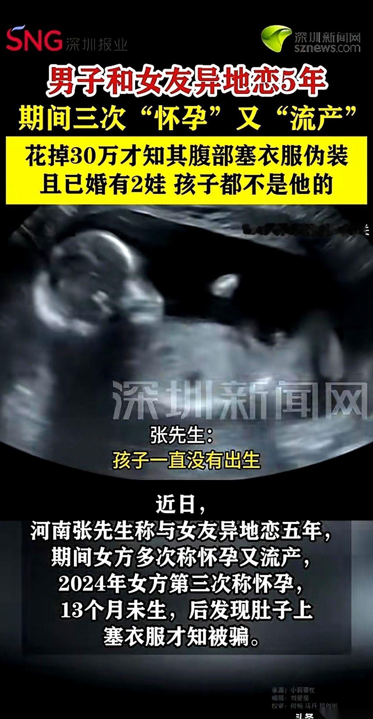 我看到这个新闻的时候,脑子嗡的一下。 真的,不是钱的事儿。 一个女人,能用衣服塞在肚子里,假装怀孕,一装就是13个月……这是什么概念?这是每天都在演戏,每天都在提醒自己,眼前这个男人,是个傻子。 五年啊。 一个月挣两万,自己啃馒头,钱全转过去。 30万。 换来的是什么? 是人家早就结了婚,娃都生了俩。 最狠的是什么你知道吗? 是在他第三次为“他们的孩子”拼命攒钱的时候,她正怀着自己老公的孩子,然后瞒着他,把孩子生了下来。 我靠。 这已经不是骗钱了,这是诛心。 很多人可能会说这男的太傻,太天真。 可我觉得,这根本不是傻。 这是一个老实人,用自己最朴素的方式,去爱一个人,去规划一个未来。他以为他在为自己的家添砖加瓦,谁能想到,他连地基都是站在别人家的院子里。 他掏出来的,是自己全部的家当和一颗真心。 而她从肚子里掏出来的,是一堆破衣服。 太讽刺了。 这世界上最残忍的事,不是得不到,而是你所有为之奋斗、为之感动、为之牺牲的一切,从头到尾,都是一个彻头彻尾的笑话。 钱没了可以再挣,可那五年被偷走的人生,那份被踩在脚底下的真诚,跟谁要去?