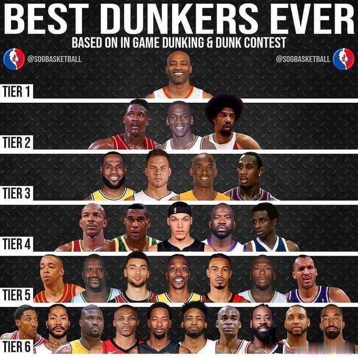 NBA史上最强扣篮金字塔,卡特毫无争议登顶。