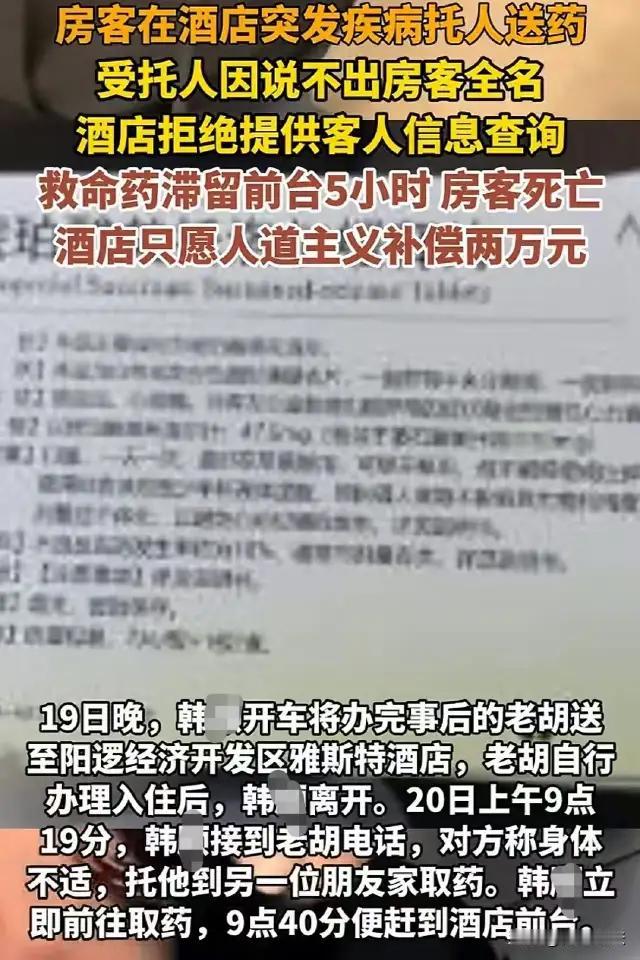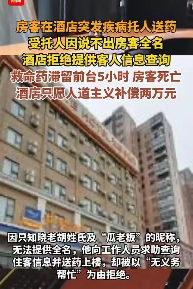 湖北武汉,一起令人揪心的悲剧在一间酒店内悄然上演。51岁的男子入住酒店后突然发病,急需药物救助。好心的朋友辗转奔波,将药物送到酒店前台后,却因联系不上男子本人,也不知其全名,只能请求酒店前台帮忙转交。谁曾想,这样急切的求助竟遭遇冷漠回应:药物竟在前台静静地放置了整整五个小时,无人过问。直到下午3点,保洁人员例行打扫时,才发现男子早已无力地倒在地板上,遗憾地永远离开了人世。 事发后,酒店方面的回应令人唏嘘——他们表示之所以未主动查询,是因客人的朋友未详细说明病情,他们出于保护客户隐私的考虑,没有擅自查看客房情况。然而,这份“隐私之名”背后,却掩盖不住一次本可避免的生命逝去。 这起事件让人不禁反思:在紧要关头,隐私保护与生命救援到底该如何平衡?当生死攸关时,冷漠与犹豫又是否合理?酒店作为提供服务的行业,承担着何种道德和法律责任? 网友们纷纷质疑:“如果及时送药,能不能挽回一条宝贵生命?”“到底是规章制度绑架了人性,还是责任感缺失了温度?”这场悲剧触动了无数人的心弦,也敲响了社会的警钟。 其实,这不仅仅是一次医疗救助的失败,更暴露出我们公共服务体系在危机应对和人文关怀上的短板。面对紧急状况,规则不应成为推脱的借口,反而应该是守护生命的底线。在遵守法律的同时,适时灵活、勇于担当,才是真正的责任所在。 也许每个人都有可能遇到类似突发情况,作为社会一份子,我们期待更多机构和个人有勇气跨出一步,让温暖和关怀成为救命的关键。生命无价,稍纵即逝的瞬间,等待的不是冷漠,而是及时的伸出援手。 你怎么看这起因“隐私”延误救援的悲剧?你认为酒店该承担怎样的责任?你又会如何在实际生活中面对类似突发事件?欢迎留言分享你的观点和意见,一起为构建更有人情味的社会贡献力量!小伙发病死亡 医院意外事件