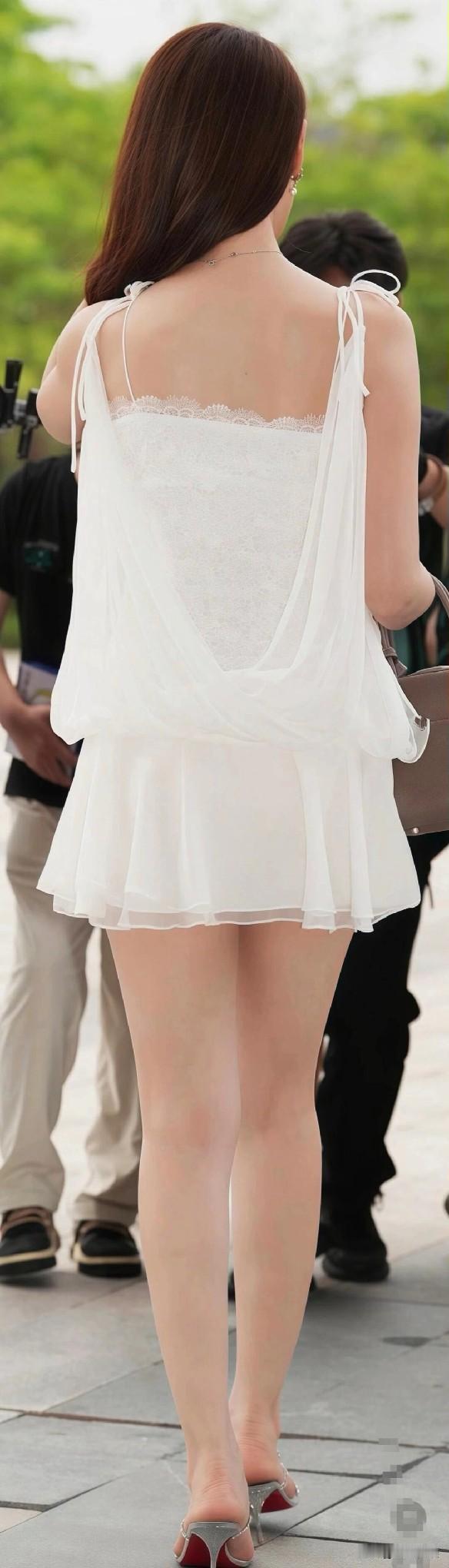白色吊带裙,配个棕色包包,脚上是带钻的凉鞋,看着清爽又好看,夏天这么穿挺好的~