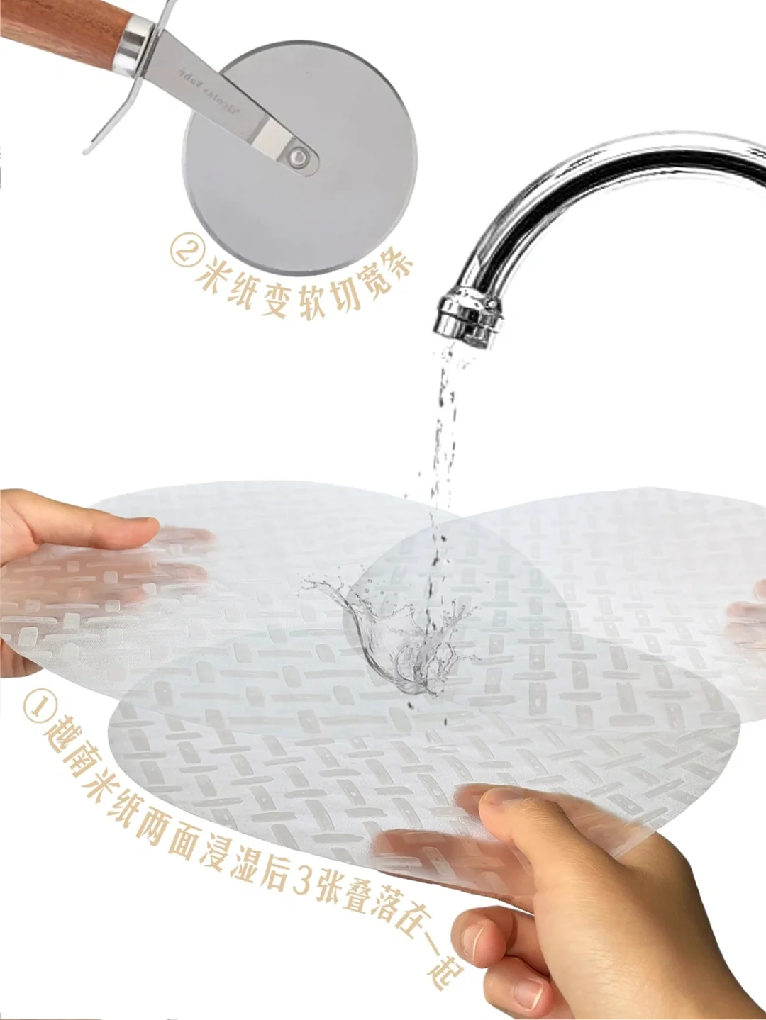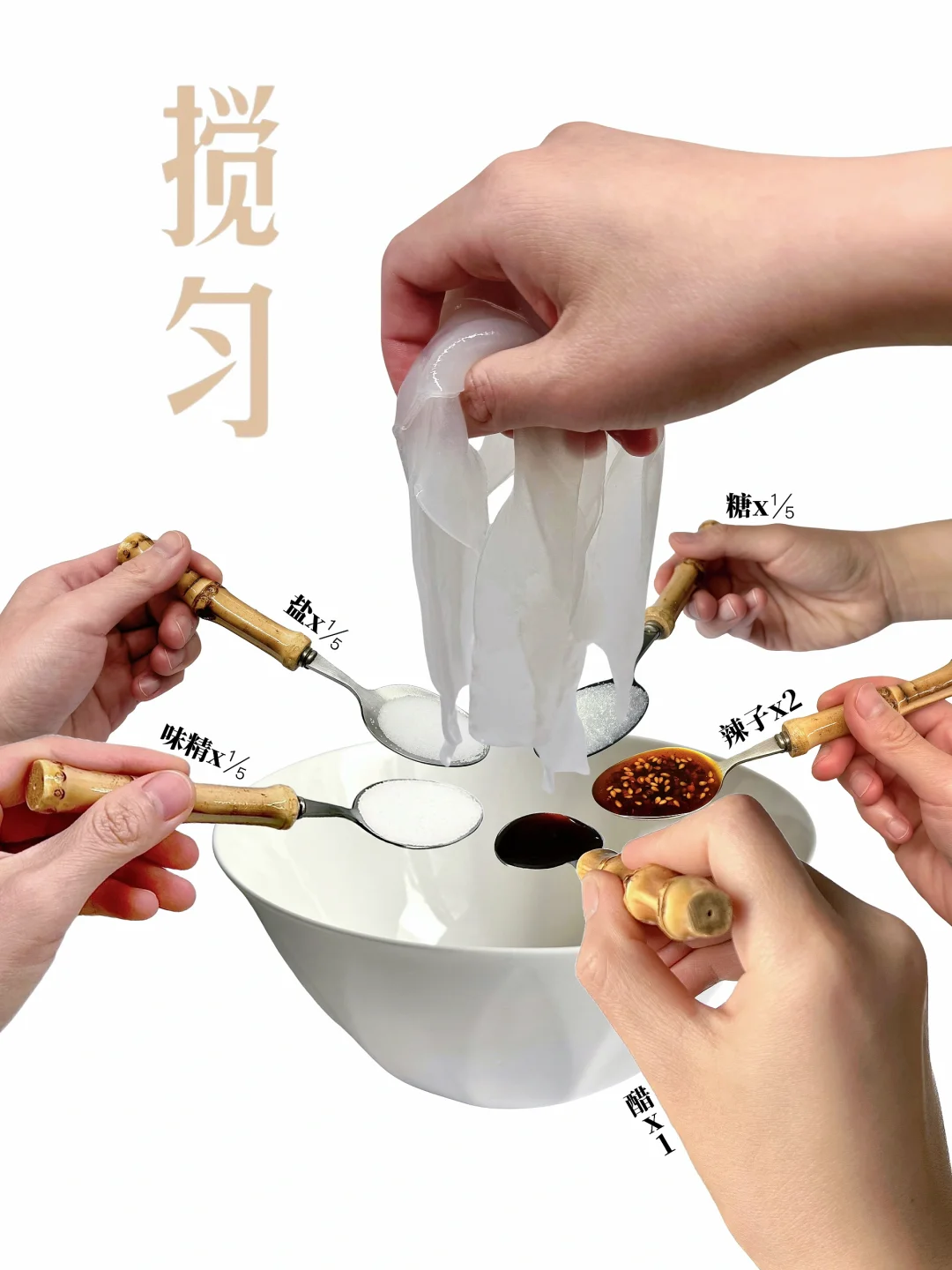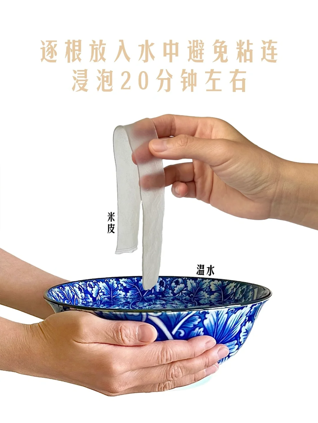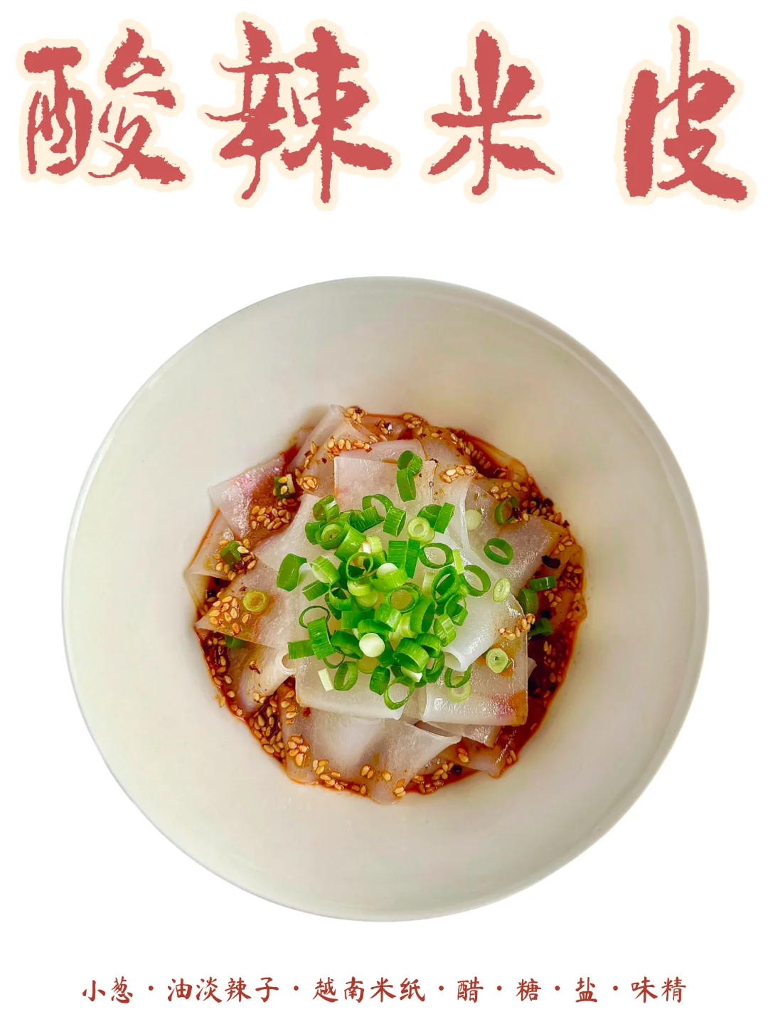 米皮在口中筋道爽滑 裹满酱料 酸辣交织回味无穷 一口接一口根本停不下来🤤 👉Tips 图中成品共9️⃣张米纸 做了三张米皮 想口感更软🉑延长米皮浸泡时间 反之亦然 🉐等米纸变软粘在一起后再切 🉑再加点黄瓜丝或豆芽一起拌