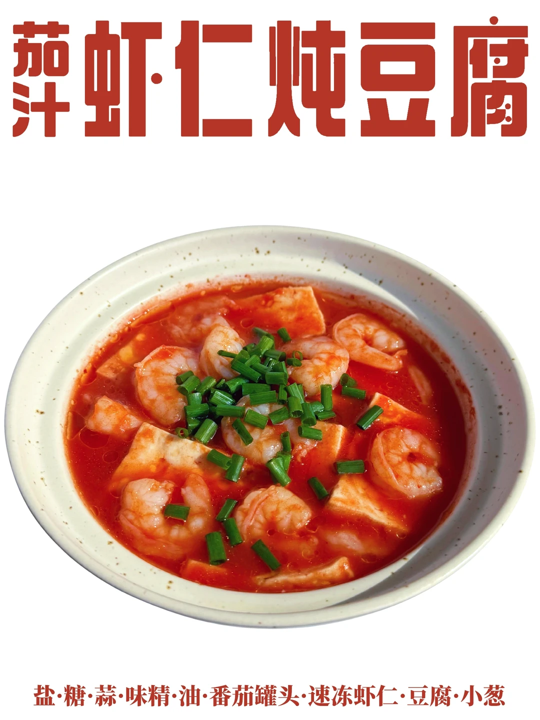 上期用了番茄 这集轮到“灵魂汤汁”✨闪亮登场 🥫没有浪费一滴! 番茄的酸🍅豆腐的嫩🫛虾仁的鲜🦐 全都交融在一起[色色R] 开胃又下饭[棒R] 👉Tips 调味🉑按个人口味调整 喜欢汤汁浓稠🉑在图二步骤加勺玉米淀粉拌匀 嫩豆腐老豆腐均🉑按喜好挑选 不吃葱🉑不放 喜欢香菜也🉑加 📖知识点 虾仁容易带点腥味 放蒜可把腥味中和掉 配合葱使用去腥增香更明显 🥄注释 勺子尺寸均为汤匙 ⚠️注意 微波炉品牌和功率不同加热效果会有差异 需按实际情况调整时间和温度