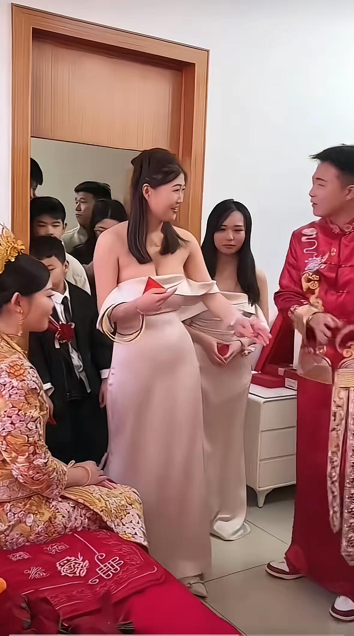 伴娘把一字肩穿成“低胸露腹装”,新郎看呆冷落新娘,这哪是送祝福,分明是没分寸! 本来两穿的一字肩拉上肩带就优雅得体,偏要故意往下扯,衣服都快掉肚子上了,连伴娘该戴的胸花都没配,眼里只剩“秀身材”。 婚礼的主角从来都是新人,伴娘再爱美也得懂场合,穿搭自由≠不分边界,抢了新娘的风头真的好看吗? 新郎当众发呆不避嫌也挺离谱,但根源还是有人没拎清——好闺蜜当伴娘,该做衬托新人的绿叶,不是抢C位的主角。 懂分寸的尊重,比再吸睛的穿搭都显气质。 你要是新娘,能忍伴娘这么抢镜吗?婚礼那些事