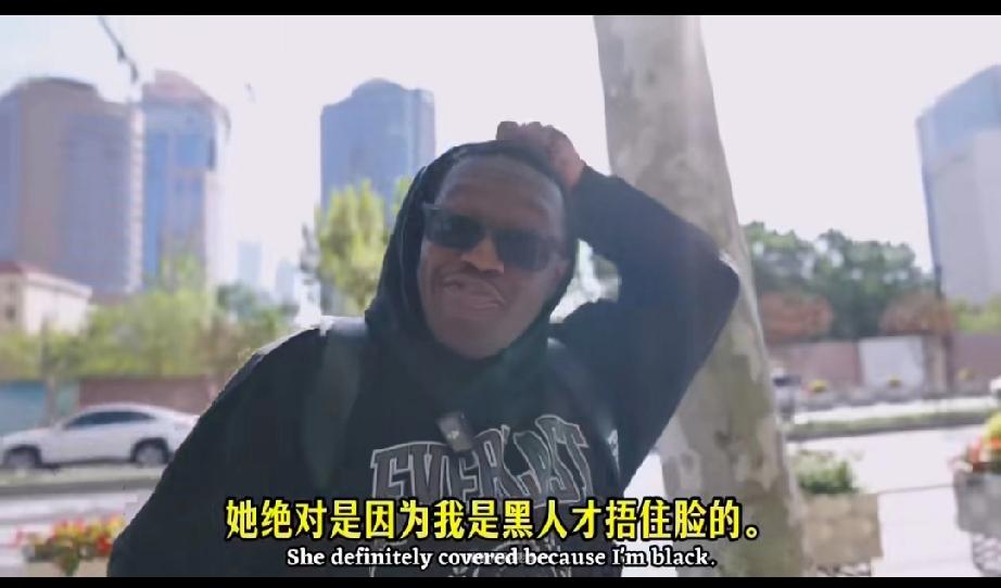 两个黑人博主小哥来中国游玩体验生活,在上海大街上迎面遇到一个大妈,只见大妈从远处走近他们的时候就开始捂着脸和嘴巴,一开始两个人并没有怎么注意,可是大妈与他们插肩而过走远以后得另一个动作却一下子让他们破防了! 镜头里的黑人小哥激动的说: “哥们你看,现在她又不捂了!她绝对是因为我是黑人才要捂住脸的!告诉我,你录下来了吗?你看到了吗?哥们,太夸张了!” 另一个小哥说: “我应该录了,她把脸全部捂住了,可能是你想多了,或者,也可能因为我们的摄像头?” 原来大妈走远以后又放下了自己捂着脸和嘴的手,这个动作让黑人小哥感觉自己受到了冒犯!
