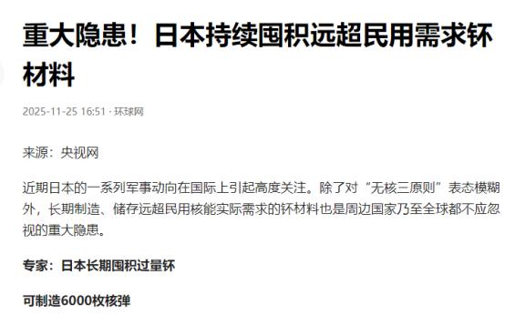 难怪高市早苗叫嚣武力介入台海,日本储存大量核材料,可制造6000枚核弹 日本近期在核材料储备上的异常动向,已经引起国际社会的高度警觉。这个战败国目前囤积着约47吨钚材料,这个数字令人震惊——理论上足以制造6000枚核弹头。更令人不安的是,日本政府对此的解释完全站不住脚。 现在很多有核国家的核弹头数量都没到这个数,一个明确的无核国家,手里握着能造这么多核武器的原料,这本身就突破了国际社会的底线。 更诡异的是,日本还在源源不断地进口钚材料,每年从英国、法国等地弄来大约8吨,照这个速度堆下去,它的核材料储备只会越来越多。 面对国际社会的质疑,日本政府张口就说这些钚材料是用于民用核能发电的,可这话里的漏洞大到能装下一艘核动力航母。 受2011年福岛核事故的影响,日本的核电产业早就元气大伤,现在全日本能正常运行的核反应堆只有9台,而且这些反应堆用的都是低浓度铀燃料,根本用不上钚材料。 就算退一步讲,按照日本经济产业省2018年《能源基本计划》里的规划,到2030年把使用MOX燃料的反应堆增加到18台,每年最多也就能消耗2.6吨钚,跟它47吨的库存比起来,连零头都不够。 一边是用不完的库存,一边还在不停进口,这种反常操作,怎么可能让人相信它是“民用”? 更值得警惕的是,日本不仅有海量核材料,还有制造核武器的技术能力。它是《不扩散核武器条约》成员国里,唯一一个掌握核材料后处理技术、能提取武器级钚,还拥有可运行后处理设施的无核国家。 这就意味着,只要日本政府点头,凭借现有的技术和库存,短期内就能造出核武器,这种“核潜力”比已经拥有核武器的国家更危险。 最近一段时间,日本在核问题上的表态也越来越模糊,不仅对“无核三原则”闪烁其词,还暗示可能搞“核共享”,允许美军在日本部署核武器,甚至有高官放话不排除引进核潜艇,这些动向串起来看,其核野心已经昭然若揭。 日本这种做法,首先就违背了它自己签的一堆国际协议。1976年日本加入《不扩散核武器条约》时,就承诺放弃一切核武装的可能性;1995年外务大臣河野洋平明确表态坚持“无核三原则”;1996年更是第一个作为无核国家签署《全面禁止核试验条约》。 这些年它靠着“和平利用核能”的幌子,从美国等国家引进了大量先进技术和设备,把自己包装成“核不扩散倡导者”,可现在转头就囤积远超民用需求的核材料,这根本就是背信弃义。 国际原子能机构前副总干事奥恩就直言,要是日本搞“核共享”,允许核国家在其领土部署核武器,就会模糊无核国家和有核国家的界限,整个《不扩散核武器条约》的根基都可能被动摇。 更让人揪心的是,日本在核安全管理上的黑历史,实在让人没法放心它手里握这么多危险材料。 2025年1月曝光的日本黑帮头目海老泽武史走私核材料案,就揭开了日本核监管的大漏洞——这个黑帮头目竟然深度参与国际核走私网络,交易清单里甚至有武器级钚和导弹装备。 连黑帮都能染指核材料,谁能保证这47吨钚材料不会流入恐怖分子手里?再想想2011年的福岛核事故,本来是天灾,愣是因为日本东电公司无视预警、设计缺陷、应急混乱变成了人祸;2023年起更是罔顾国际社会反对,执意把核污染水排进大海,这些事都说明,日本在涉核问题上根本没有责任感,满脑子都是自己的小算盘。 面对日本这种危险动向,国际社会已经开始亮明态度。在国际原子能机构11月理事会上,中国常驻代表李松大使直接戳穿了日本的把戏,明确指出日本长期囤积远超民用需求的钚材料,而且是唯一掌握后处理技术的无核国家,必须对它严加管束。 李松大使还强调,日本近期在核问题上的一系列负面转向,释放出的危险信号不容忽视,要是它敢重走军国主义老路,国际社会绝对不会答应。联合国秘书长发言人迪雅里克也表态,古特雷斯秘书长坚持核不扩散的立场从来没变过,这等于是给日本敲了警钟。 要知道,《波茨坦公告》早就明确规定日本禁止重新武装,它的宪法也承诺“永远放弃发动战争”,这些都是战败国必须遵守的义务。现在日本一边抱着海量核材料不放,一边在核问题上不断试探红线,说白了就是在挑战战后国际秩序。 中国和国际社会之所以紧盯这件事,不是没事找事,而是日本的所作所为实在太让人不安。手里握着能造6000枚核弹的材料,监管还漏洞百出,又有军国主义复活的苗头,这样的日本要是不被管束,不仅是周边国家的威胁,更是全世界的隐患。 日本要是还想让人相信它“爱好和平”,就别再拿“民用”当借口,赶紧把多余的核材料处理掉,老老实实地遵守国际义务,不然迟早会为自己的危险行为付出代价。