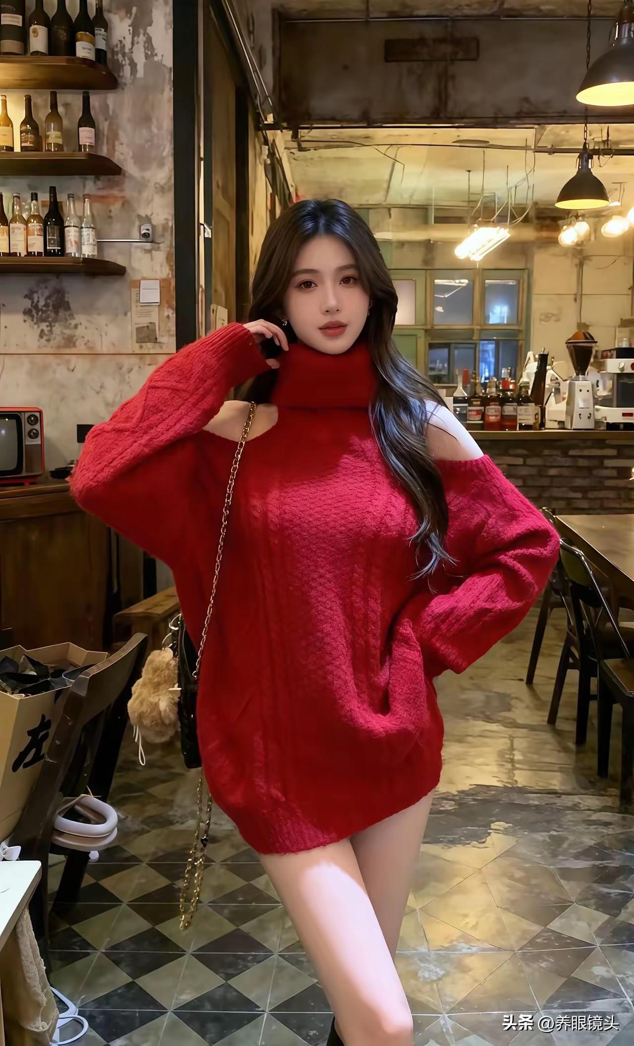 复古酒吧里的时尚红衣少女🍷👗✨