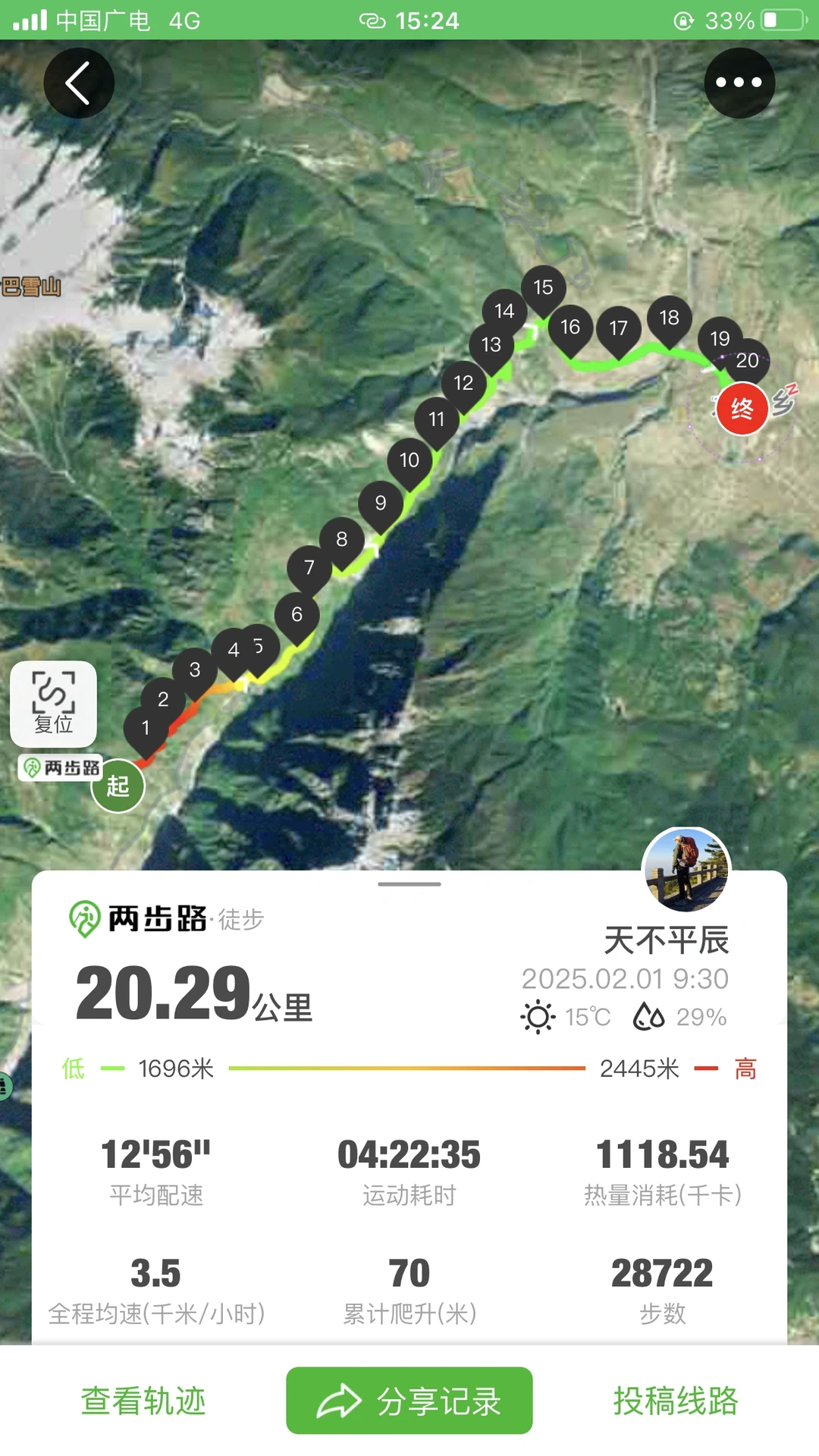 今天线路简单,几乎没有爬升,所以走的很快,同时也是艰难的一天,不知道是不是最近重装太频繁了还是怎么的,今天走着走着突然膝盖疼了,加上大部分都是硬化路,脚上起泡了,一瘸一拐的走到大具乡。我都想放弃行程下撤,准备回去养腿了。