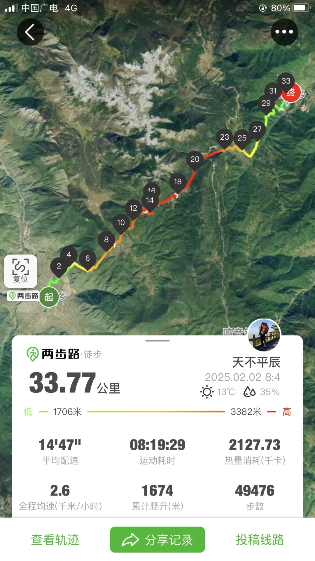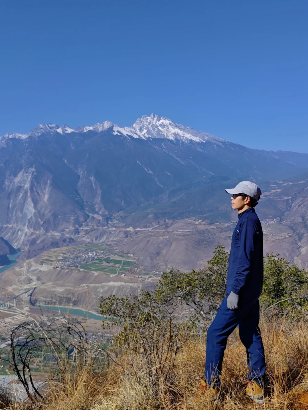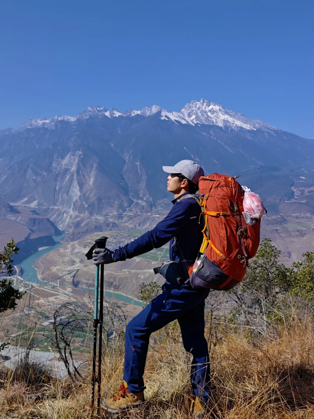 ⭐一、基本参数: ❶路线:虎跳峡→石头城→泸沽湖200公里Day3(大具乡→宝山乡) ❷行程:大具乡→下白麦→长松坪→宝山乡(腊汝) ❸天气:晴,气温-3~11度 ❹起点:大具乡东巴文化广场 ❺终点:宝山乡卫星宾馆 ❻最低海拔:1706m(两步路) ❼最高海拔:3382m(两步路) ❽累计里程:33.77Km(两步路) ❾累计爬升:1674m(两步路) ❿累计下降:1223m(两步路) ⓫全程耗时:12小时54分(两步路) 这是单人重装穿越虎跳峡→石头城→泸沽湖200公里的第三天。 昨天从中虎跳峡下到大具乡,走的脚上起泡膝盖疼,原本想下撤的,但是看了下回程的车票都售空,加上睡了一晚上感觉好多了,就继续原计划的行程。 今天的路线太艰难了,开局就是翻越一座将近3400米的高山,先是4公里爬升1100多米,人迹罕至,道路荒废,坡陡路滑,走了4个多小时,走的生无可恋。上到下白麦后又是连续的水泥路缓坡上升,到达最高点又是连续的水泥路下降到宝山乡,可怜我前一天脚底还起了水泡,那个酸爽。 今天的路线没风景,开局爬坡,后面压马路,只有在爬坡的时候能看到玉龙雪山、虎跳峡、哈巴雪山并排的景象,深感震撼,后面压马路就没什么风景了。 到达下白麦的时候我的饮料已经喝完了,又热又累,喝水索然无味,就想着去村里看看有没有商店买瓶可乐喝,结果没有商店,本地人直接去家里拿了一大瓶饮料送给我,说付钱跟他买也不要,被热情到了。