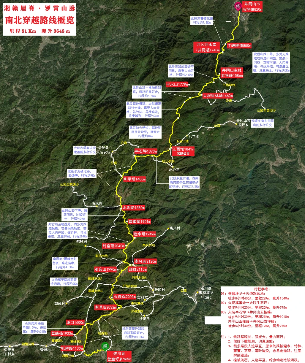 ❷路线:罗霄山脉中段穿越(营盘圩乡→井冈山市)