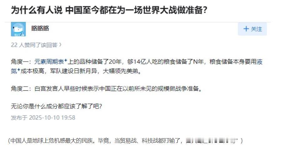 如果12国联军共同出手,中国会害怕吗?[害羞][捂脸][灵光一闪][酷拽] 笔者认为:老美他们急眼了! 近日,外网有人提问:“如果美国联合日、韩、英、加、澳、德、法、意、菲、印、以共同对中国发动全面战争,中国能扛多久?” 一般来讲现在敢对中国人提出这个问题的,大多都是皮痒痒了的。 给他们一个指标用以参考吧! “网上有资料显示: 在任何工业指标中,尤其是在钢铁产量、发电、高性能炸药、机器人、机器狗、无人机、海军力量、核力量等领域,只要中国没有占到全球总量的70%或更多,中国人就会感到深深的不安!” 所以,老美联合的这帮乌合之众你们看着办。 笔者借用老外网民的一句话回击你们: “啥时候打可以由西方来做主,但啥时候停就要看中国的脸色了!”[灵光一闪][捂脸][灵光一闪][灵光一闪][灵光一闪]