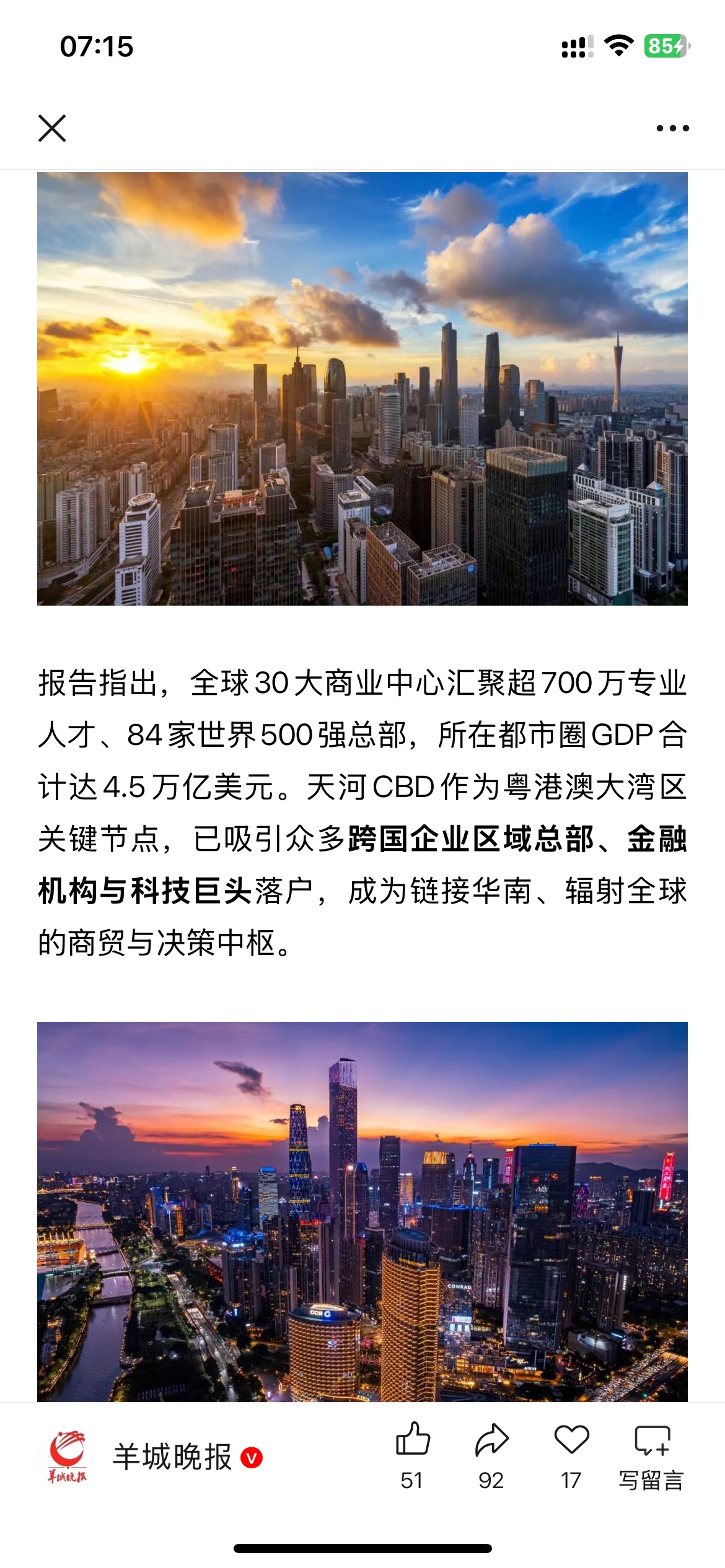 最新世界中央商务区吸引力排名正式公布,广州市天河珠江新城正式上榜全球中央商务区第22名,这是广州市天河区珠江新城CBD首次上榜,该排名就达到了全球前25名全国前四名的优异成绩进一步强化的广州市天河区珠江新城CBD的整体世界知名度以及综合影响力,目前广州市珠江新城已经吸引了全球多家科技企业以及金融企业落户整体的金融吸引力和整体吸引力,都达到了全国领先级别