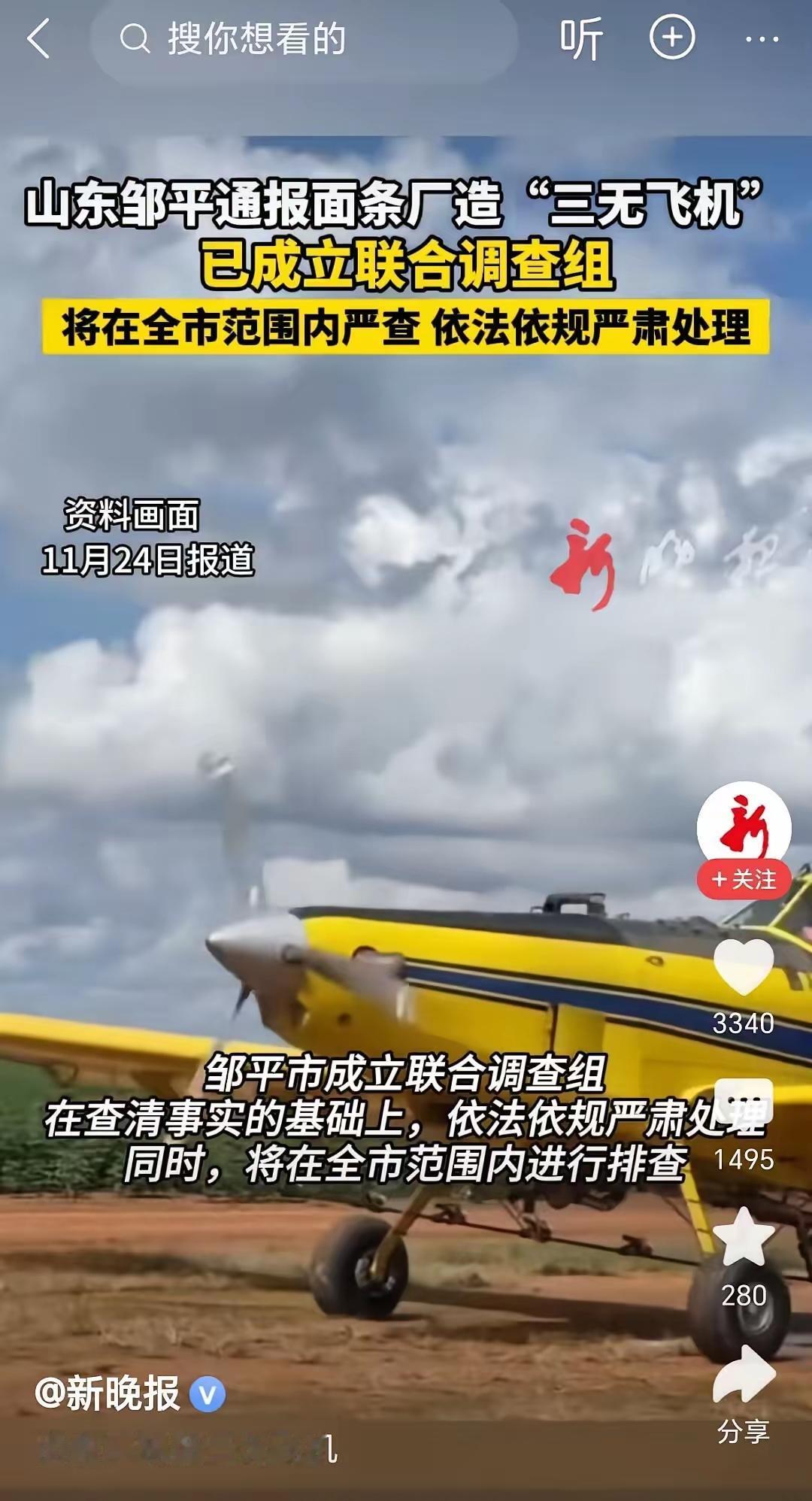 山东这次是真藏不住了! 全国人民都被这个“操作”惊到了——一个加工面条的厂子,居然把飞机造出来还飞上了天! 先别急着夸“跨界大神”,这架飞机说白了就是“三无产品”:没生产许可证、没飞行许可证、没专业资质,现在已经被严查严惩了。 懂机械的都知道,机械人的动手能力和创造力确实牛,几乎没有他们造不出来的东西。但创新不是“无底线折腾”,造飞机可不是做面条,一个零件的误差都可能酿成大祸,不仅关乎自己的命,更牵连着别人的安全。 这份敢想敢干的劲头值得肯定,但脱离了规则和安全的“创新”,根本不是本事,而是对生命的漠视。真正的厉害,是在守规矩的前提下,把本事用在刀刃上。 你觉得这种“跨界造飞机”是勇气可嘉还是胆大包天?你身边还有哪些让人惊掉下巴的“跨界操作”?来评论区聊聊~ 我可以帮你把这篇文章的核心观点提炼成短视频脚本,用更直观的画面感吸引更多读者,需要我做吗?