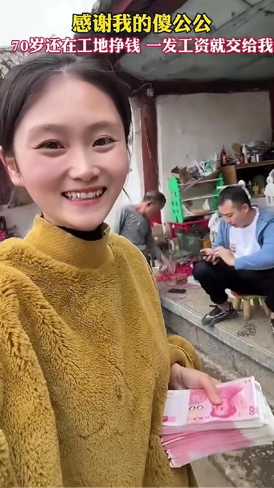 70岁的公公还在工地挣钱,一发工资就交给儿媳,当儿媳接过公公给的工资后,兴奋的随手拍了视频,来炫耀自己有个好公公。给钱时儿媳高兴,假如哪天公公挣不来钱时,希望儿媳也会这样对待自己的公公,让他老有所依,晚年幸福! 公公帮衬儿子儿媳的小家,这个家会富裕很多,至少生活中一部分开销有了着落,为儿媳减轻家庭中的负担!