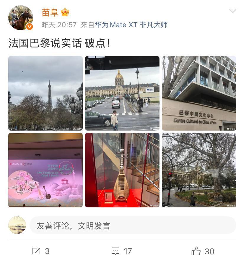 【著名相声演员苗阜远赴巴黎参加曲艺节,完美避开岳云鹏巡演,你怎么看?】 近日,有网友发现著名相声演员、一级演员、相声表演艺术家、相声大师、陕派相声创始人、博士生导师、大学客座教授、汉语文文学博士、青曲社董事长苗阜在微博晒出在自己远赴巴黎参加曲艺节的照片,并且晒出巴黎的建筑和风景!无独有偶,德云一哥岳云鹏刚刚结束在巴黎的商业巡演,如此看来苗阜也是选择在岳云鹏结束以后来到巴黎的,完美避开岳云鹏,也是避免了尴尬!由此,引发网友的关注!据了解,苗阜一直致力于曲艺宣传和文化传播的事业中,身上也是有些无数和曲艺相关的社会职务,如今避开岳云鹏宣传曲艺,也是大有蹭一波岳云鹏留下的曲艺余热!对此,你怎么看? 第一,苗阜此举是在上层建筑层面,意在交流和宣传,避开岳云鹏是一种蹭流量的手段!巴黎有什么曲艺氛围吗?并没有!靠这曲艺的名头举办一场交流会,这个是上层建筑的体现!而岳云鹏开展曲艺巡演是一次文化演出,更能够贴近观众!如今,岳云鹏商演结束,巴黎曲艺热潮还没有退去,苗阜此次参加曲艺也算是恰到好处,存在蹭流量的痕迹! 第二,苗阜远赴巴黎参加曲艺节,也是跟随郭德纲对德云社的布局,同时也是一种学习方式!其实,郭德纲似乎不屑于什么曲艺节,也不屑于举办什么交流活动,更多的是实打实的演出,贴近观众,贴近现场!如今,苗阜远赴巴黎参加曲艺节,明显是想靠这样的方式和郭德纲碰一下海外市场,也是跟随德云社的布局在扩宽市场,只是名头不一样而已,但是殊途同归!