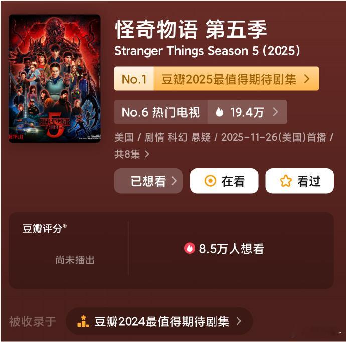 奶奶你追的剧已经终于更新了,快快呈上来好吗,前四季已经不知道看过多少遍了怪奇物语第五季
