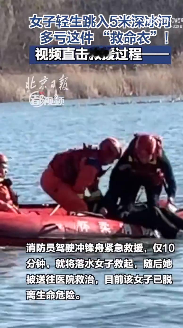 在北京怀柔区的潮白河岸边,一名钓鱼的群众突然发现河道中央有个人影,仔细一看是个女子漂浮在水面上,距离岸边得有二十多米远,还随着水流慢慢往下游漂,他赶紧大声呼救,同时拨通了消防救援电话。寒冬时节的河水冷得刺骨,而且事发的这段河流水深超过5米,女子看着还有生命迹象,但谁也不知道她能撑多久,情况特别危急。 消防救援站接到报警后,立刻带着抢险救援车和冲锋舟等装备赶了过去,抵达现场后,救援人员迅速观察情况,站长当即下令展开救援,还朝着河中央的女子大声喊话,让她把手张开,像仰泳一样躺好,这样能增加自身浮力。随后三名经验丰富的消防员登上冲锋舟,在确保自身安全的前提下,全速朝着女子漂浮的位置划过去,整个救援过程紧张又迅速,没多久就顺利抵达了目标位置,把女子安全转移到了舟艇上。 等冲锋舟返回岸边,早已等候在那里的医护人员立刻上前,对女子进行紧急检查和处置,之后把她送往医院做进一步的观察治疗,现在女子已经脱离了生命危险。经现场民警初步调查,这名女子是因为个人问题产生了轻生的念头,才跳入了河中,幸好被河边的钓鱼群众及时发现并报了警,才没酿成悲剧。 事后消防员特意提到,这个女子其实并不会游泳,她能在5米深的河水里一直漂浮,全靠身上穿的那件较厚的羽绒服。原来羽绒服的面料大多是聚酯纤维,吸水性差还不容易透气,里面填充的大量羽绒又能锁住不少空气,落水后就会形成一个个气腔,从而产生较大的浮力,正是这份浮力给救援争取了宝贵的时间。不过消防员也提醒,羽绒服的浮力会随着浸泡时间增长慢慢减弱,根本不能当成专业的救生衣来用。不管遇到什么想不开的事,都不该拿自己的生命开玩笑,要是意外落水,先别慌乱,尽量保持呼吸稳定,利用身边能漂浮的物品让自己浮在水面,再大声呼救等待救援。 来源:北京日报