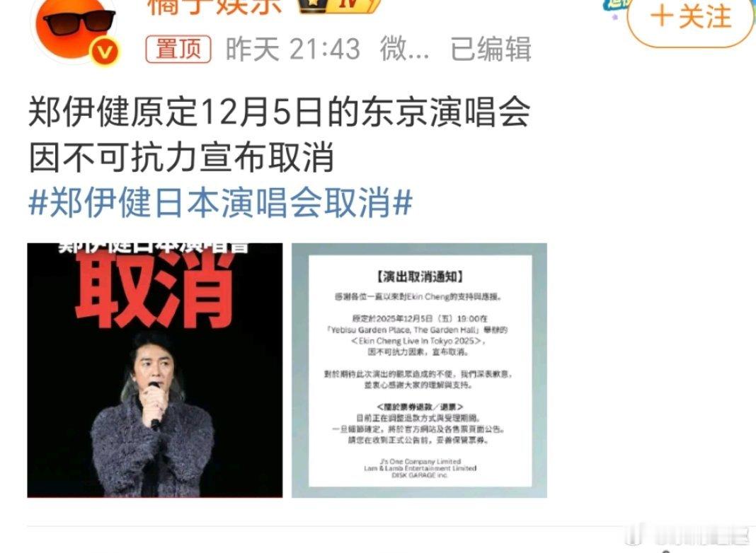 郑伊健日本演唱会取消航班停了想聽的過不去,不停咋辦?