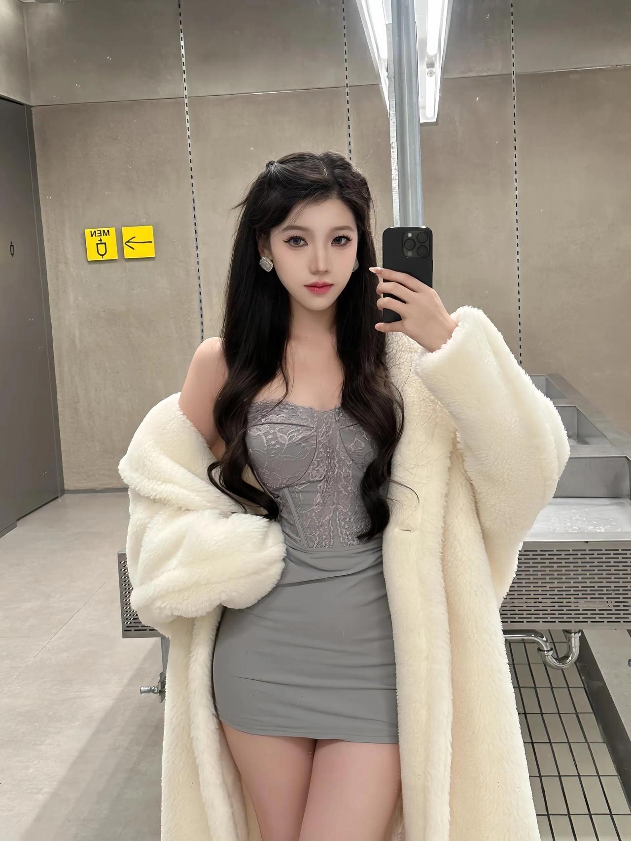 👗 穿搭灵感:灰色连衣裙+毛绒外套,优雅又时髦!💃🏻✨