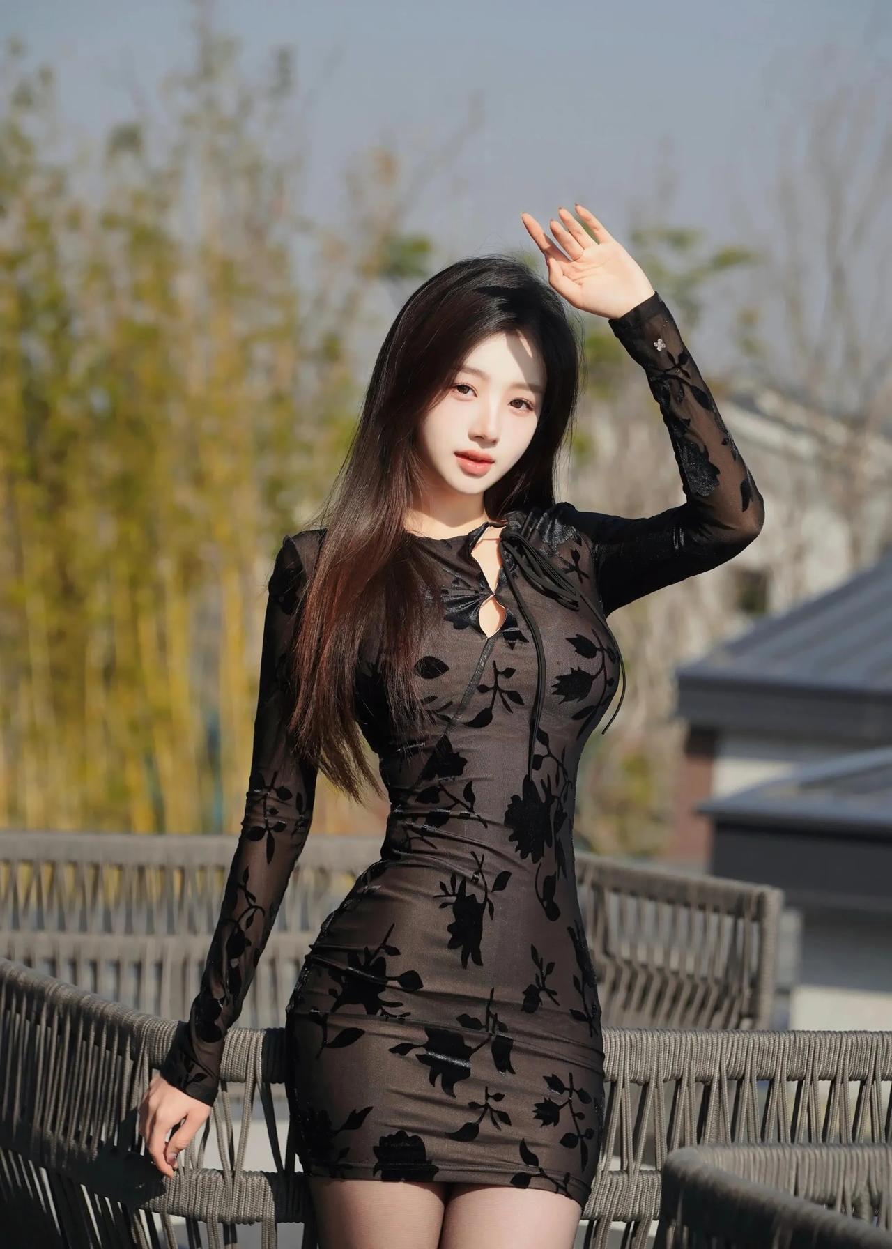 优雅的复古门后,惊艳的背影与精致的瓷器相映成趣。