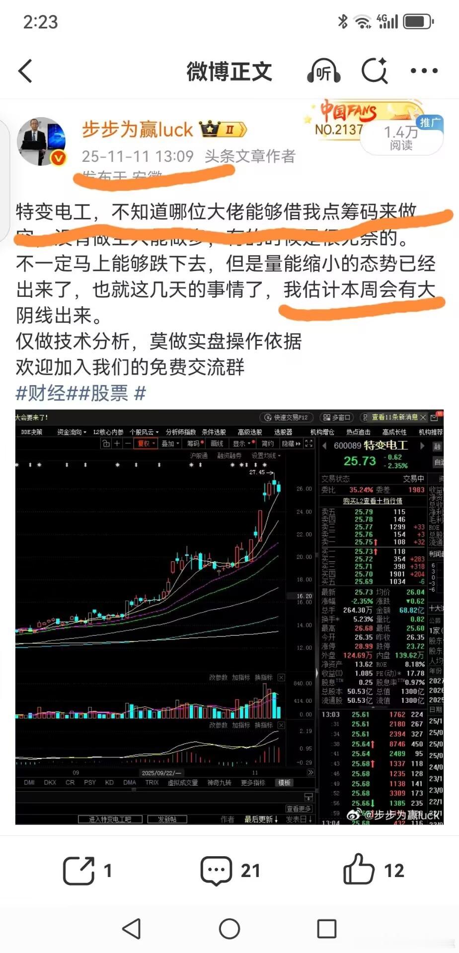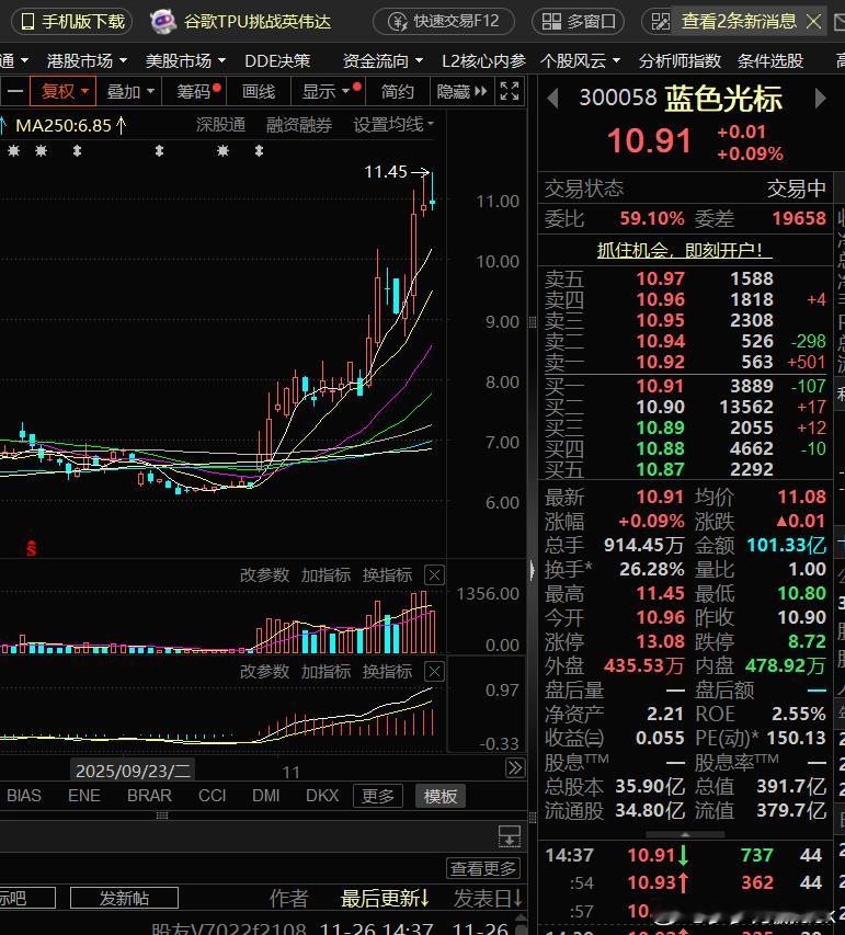 蓝色光标,樯橹之末了我准备找大佬借筹码做空蓝色光标,不知道能否融到券。前两个被我嘴巴做空的特变电工(11.11)、中国中免(11.12),都跌了20-30%,到现在还没有明确的企稳迹象。蓝色光标,这段时间被吹上了天,ai应有的领头羊,但很可惜资金的行为是诚实的。我曾说过,蓝色光标这几天创出了10年的历史新高,我说过历史新高是不能出现巨量。历史新高代表着没有套牢盘了,没有套牢盘哪来的那么多抛盘,唯一合理的解释就是机构在大量离场。当然,我认为蓝色光标快则明后天,慢则下周初就会有大面出来。只能做多不能做空,融不到券,干着急。欢迎加入我们的免费交流群财经股票