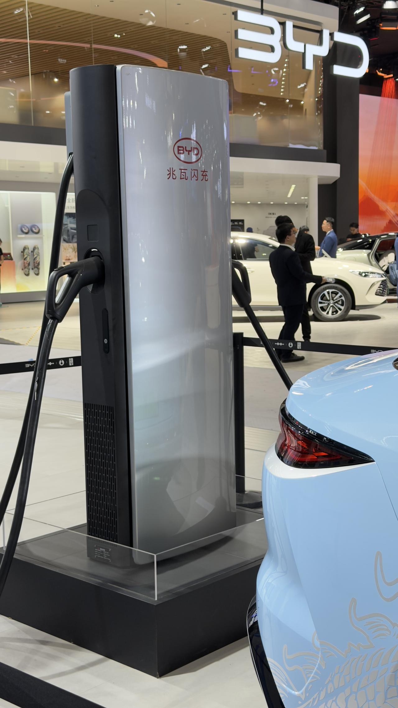 在广州车展看到比亚迪汉L展示兆瓦闪充,充电速度是真快啊,显示百分比的数字都快跳不过来了。l和唐L新出的皮肤很好看哦,实车特别有质感。