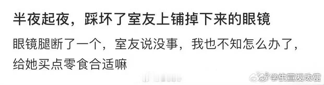 半夜起夜,踩坏了上铺室友掉下来的眼镜