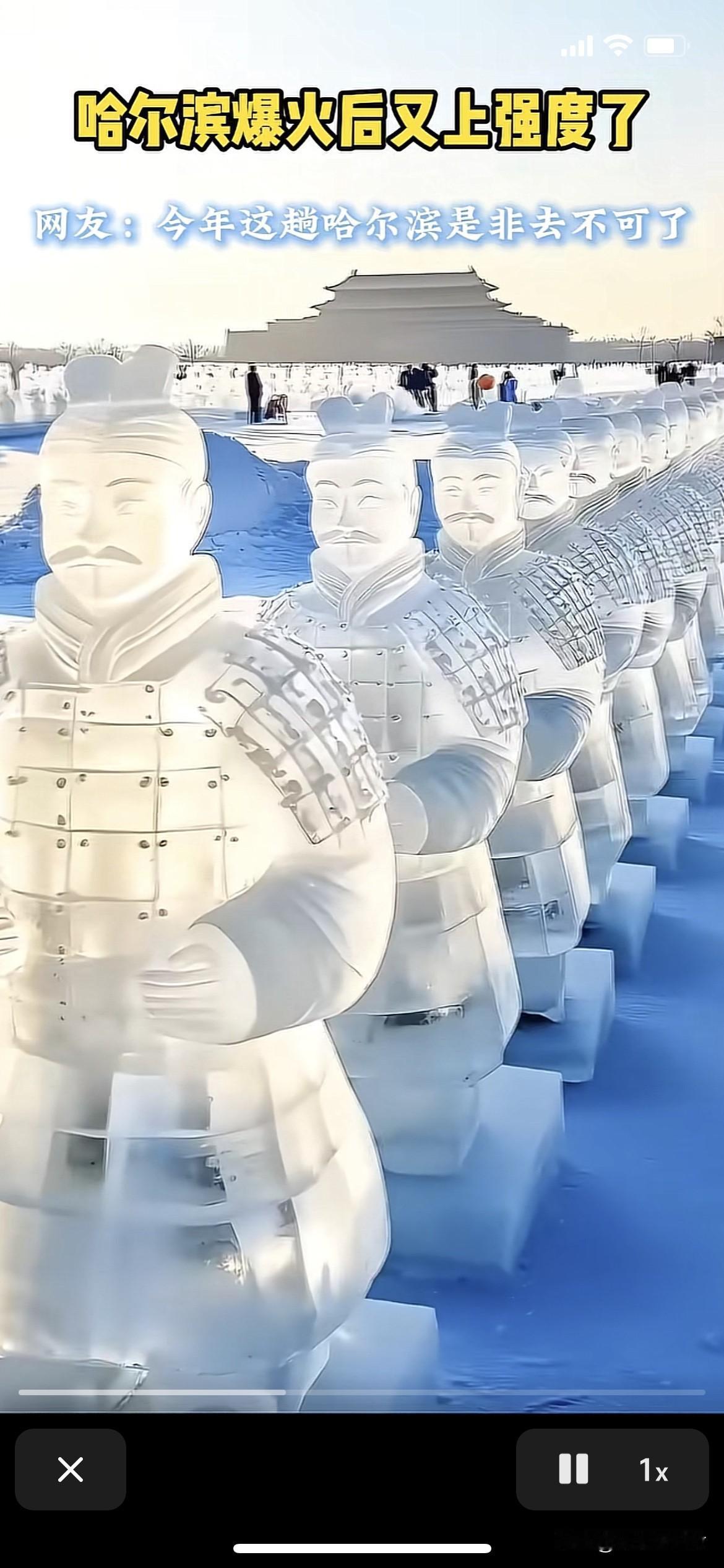 来哈尔滨看冰雪大世界吧。太漂亮!太时尚了。有飞机、导弹、航母。 美轮美奂的城堡。怎么这么美。 这个是真的么?也太美了,感觉是童话里公主👸住的城堡了。 十二月二十五号开放。 兵马俑都来站岗了, 你们还等啥呢?来吧!来吧! 哈尔滨欢迎全国的朋友 来冰雪大世界尽情游玩!