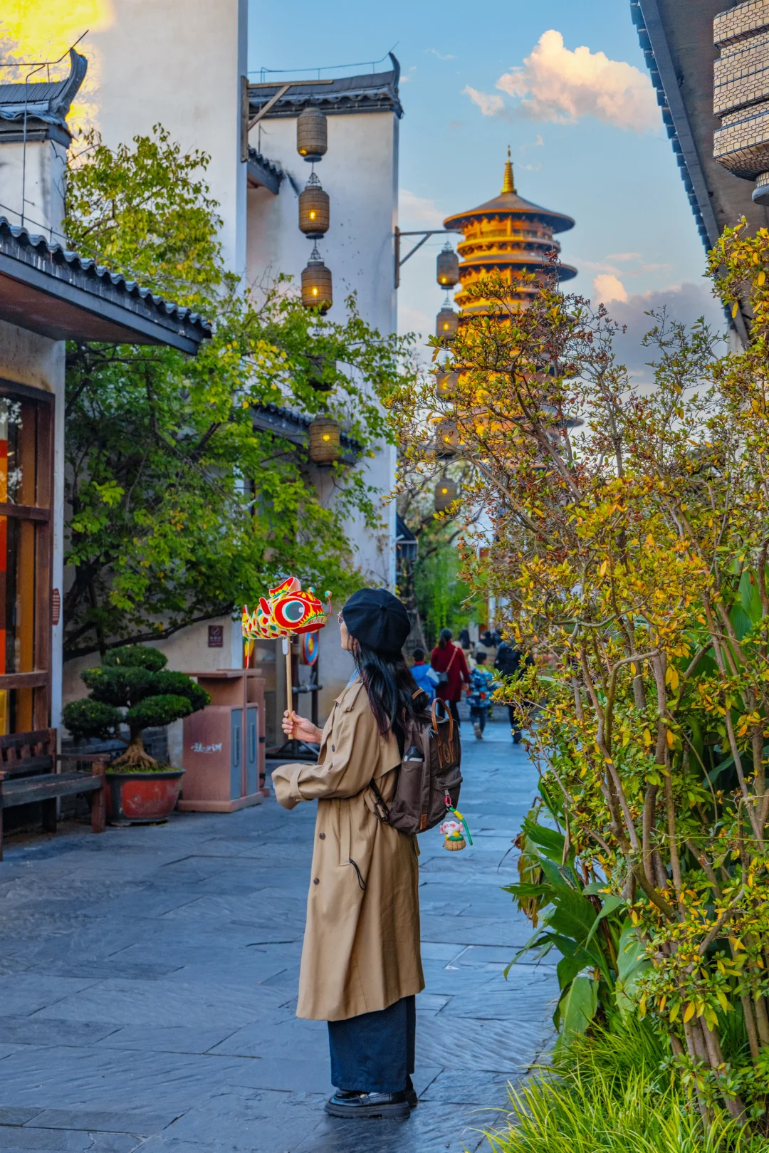 1️⃣就在抱玉塔前的五显湖之畔,一定不要靠近塔,距离太近影响观看;