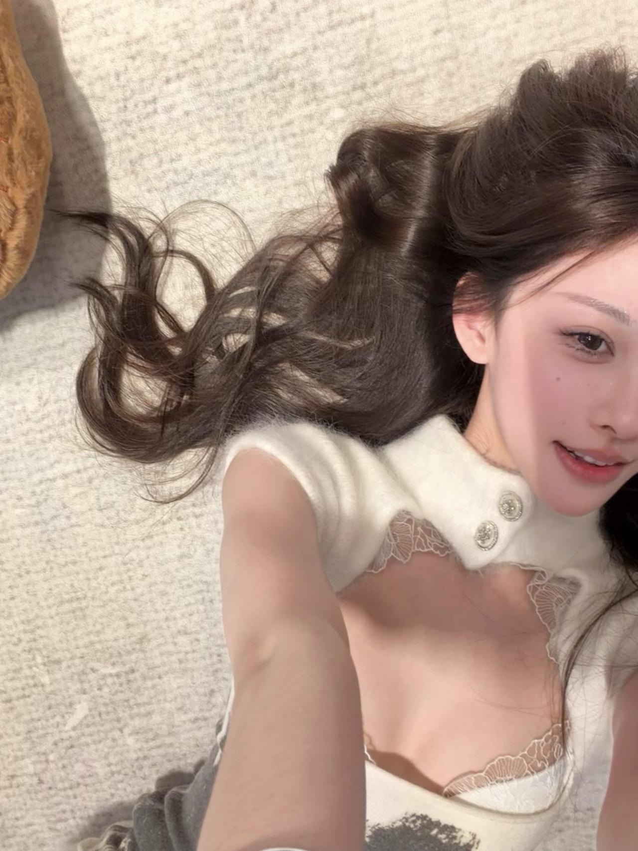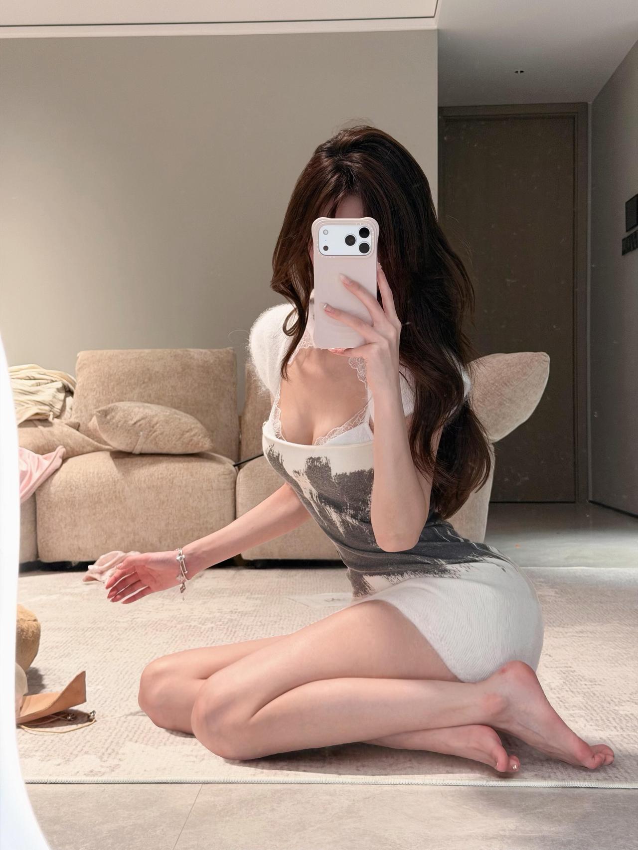 慵懒的午后,镜中自拍的少女,温柔与性感并存。