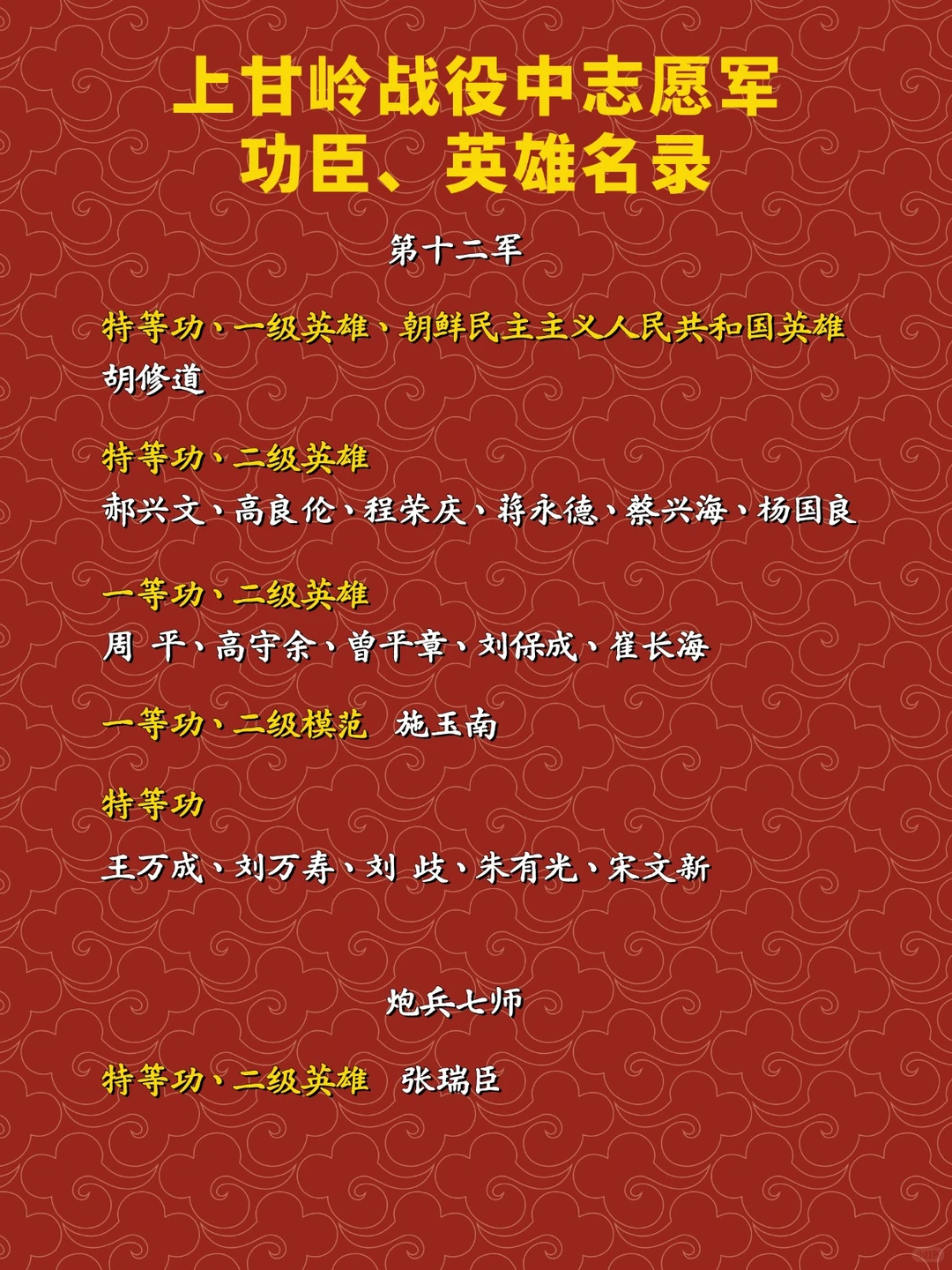 今天是上甘岭战役胜利73周年! 1952年11月25日,中国人民志愿军在历时43天的上甘岭战役中取得胜利。 面对敌人的狂轰滥炸,志愿军将士依托坑道工事与敌反复争夺,最终赢得了战役的胜利,用血肉之躯筑起钢铁防线!黄继光舍身堵枪眼、孙占元双腿被炸断仍指挥战斗、胡修道一人一天歼敌280余人……无数英雄用生命诠释了"为了祖国、为了人民"的奉献精神,铸就了不屈不挠、血战到底的上甘岭精神! 铭记历史,致敬英雄!