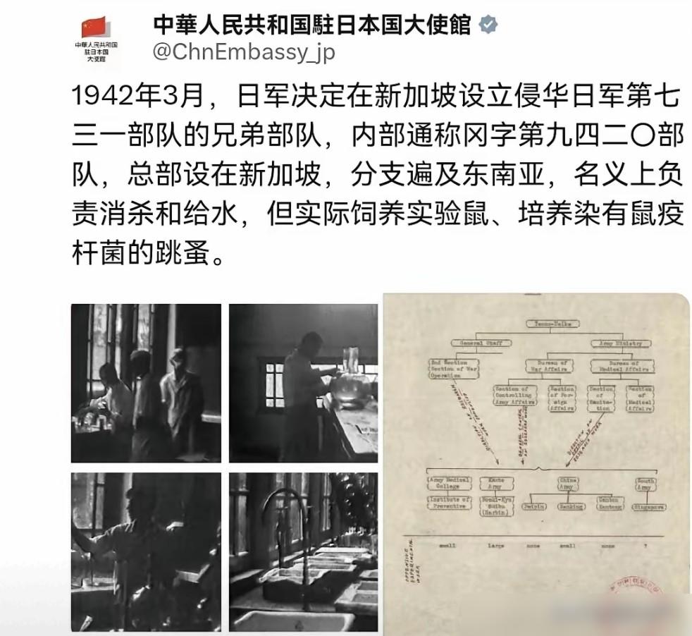 对新加坡进行回敬,不知道现在新加坡脸上还挂不挂的住!11月25日,我们驻日大使馆刊文称,1942年3月,日军决定在新加坡设立侵华日军第七三一部队的兄弟部队,内部通称冈字第九四二〇部队,总部设在新加坡,分支遍及东南亚,名义上负责消杀和给水,但实际饲养实验鼠、培养染有鼠疫杆菌的跳蚤。、   这支部队内部通称冈字第九四二〇部队,实际上是侵华日军第七三一部队的亲弟弟,干的是一模一样的反人类勾当,而新加坡就是这支部队的总部所在地,相当于日军在东南亚散播死亡的指挥中心。   当年救死扶伤的地方,硬生生被改成了培育病菌、饲养毒物的工厂,周边还建了多个分支,辐射马来西亚、印尼、菲律宾等多个国家,形成了一张遍布东南亚的细菌战网络。   新加坡学者林少彬花了近十年时间搜集资料,最后发现这支部队不仅是日军在中国战场外最大的细菌战部队。   更是整个日本军国主义细菌战计划的重要一环,天皇亲自批准成立,指挥链直通日本陆军大臣东条英机,可见其分量之重。   日军在新加坡的操作简直把“虚伪”二字发挥到了极致,嘴上喊着防疫,手里却在疯狂饲养老鼠、培育带毒跳蚤。   根据部队成员的回忆,当年新加坡郊外的实验室里,老鼠笼子堆得像小山一样,有的是本地捕捉的,有的甚至是从日本用轰炸机空运过来的。   每隔三四个月,培育好的染有鼠疫杆菌的跳蚤就会被装进大玻璃罐,通过火车运往泰国,再分发到各个战场。   新加坡前社会事务部长奥斯曼渥年少时曾在这支部队当助手,他后来回忆说,自己每天的工作就是捕捉老鼠,看着跳蚤吸食病鼠的血肉染上鼠疫,再进行混养繁殖,那些装满跳蚤的玻璃罐,当时他不知道是什么,后来才明白里面装的全是致命的毒药。   如果说饲养毒物还只是准备工作,那这支部队在东南亚犯下的人体实验罪行,更是让人毛骨悚然。   在印尼雅加达的劳工营,日军打着接种破伤风疫苗的幌子,给上百人注射高纯度毒素,导致他们全身痉挛而死,为了掩盖罪行,还嫁祸给当地的印尼科学家穆赫塔,将其残忍处决,后来尸检发现死者体内只有毒素没有细菌,才揭穿了这场预谋已久的屠杀。   讽刺的是,这些实验数据最后还会和731部队共享,新加坡的实验室成了日军完善细菌战技术的“东南亚分舵”,而那些被实验的战俘和平民,不过是他们眼中可以随意消耗的“材料”。   日军可没打算只在实验室里折腾,他们在新加坡培育的细菌武器,很快就被投用到了实战中。根据英美联合情报机构的解密档案,1944年初,日军以仰光为中心。   把从新加坡运过去的鼠疫跳蚤装进类似“圣诞球”的玻璃细菌弹里,空投到中缅边境,这种炸弹和731部队在中国使用的如出一辙,目的就是通过跳蚤传播鼠疫,让盟军士兵失去战斗力。   美军医生莱昂纳德・肖特战后在私人信件里证实了这一点,他当时发现中缅边境突然出现不明原因的鼠疫疫情,追查后才发现是日军空投细菌弹导致的。   而这一切的源头,都指向了新加坡的9420部队总部,正是从这里,一批又一批的带菌跳蚤、病菌被输送到战场,变成了屠杀平民和士兵的利器。   最让人不齿的是,日本投降后,这支部队为了掩盖罪行,在撤退时焚毁了大量档案,成员纷纷伪装身份返回日本,而美国为了获取他们的细菌战研究数据,竟然和这些战犯做了交易,用豁免权换取实验资料。   而新加坡作为当年的总部所在地,这段历史却被刻意淡化了几十年,直到近年学者们跨国搜集资料,才把这支部队的罪行一点点拼凑完整,所有证据都指向一个事实:新加坡曾经是日军在东南亚实施细菌战的大本营。   现在驻日大使馆把这段历史公之于众,相当于直接把新加坡当年的“黑历史”摆到了台面上,那些总想着回避的人,此刻怕是很难再装作若无其事。   要知道,当年日军在新加坡建立的不是什么防疫机构,而是实实在在的杀人工厂,当地老人的口述、解密的档案、学者的研究,全是戳穿谎言的铁证。   这支部队在新加坡养的每一只老鼠、培育的每一只跳蚤,都沾着东南亚人民的鲜血,而新加坡作为总部所在地,无论怎么辩解,都绕不开这段与恶魔为伍的历史。   80年过去了,日本政府还在否认细菌战罪行,而新加坡如果继续对这段历史避而不谈,只会让自己陷入更尴尬的境地,毕竟历史不会因为沉默就消失,那些被细菌武器残害的生命,也不会因为遗忘就被抹去。   现在这页历史被重新翻开,不知道新加坡面对这些铁证,脸上还能不能挂得住,是不是该好好反思一下,如何面对这段曾经被掩盖的黑暗过往。