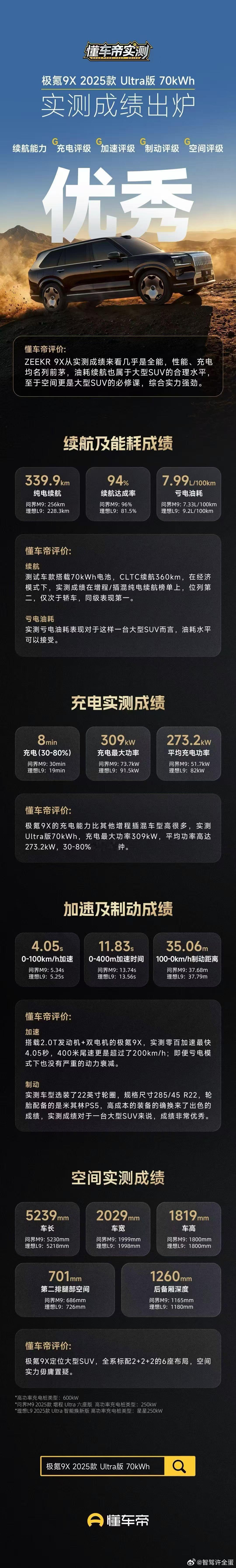 极氪9X 懂车帝实测多项数据同级领先9系豪华车中的纯电性能王者