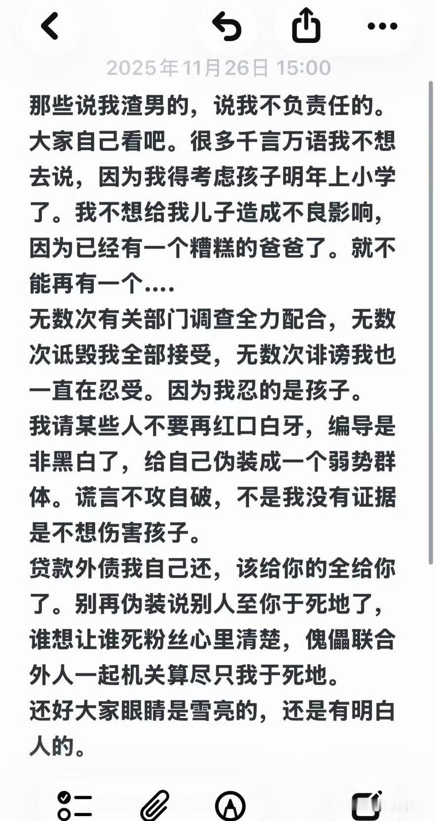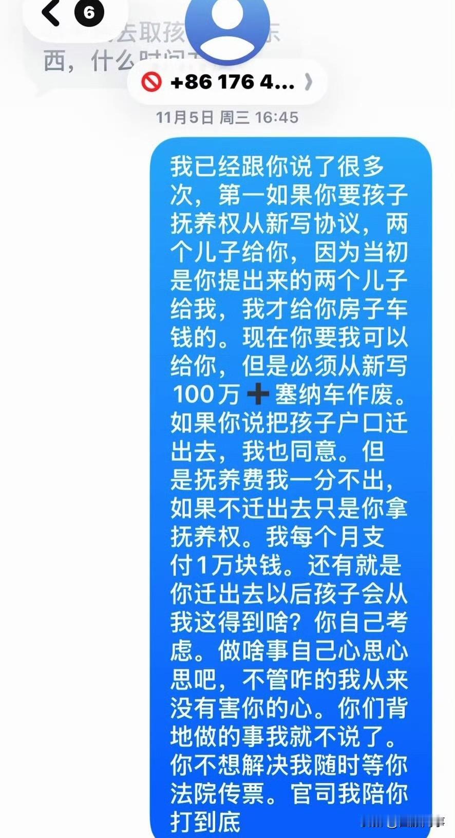 老狗爆出离婚协议!这次你们还能说什么?别再用虚伪的面具欺骗粉丝,然后利用三个孩子的母亲人设,博取大众的可怜了。很负责任的说三个孩子你没有尽到一次母亲的职责。更令人恶心的是私下背地你们干的事,处处让人恶心,同床共枕6年居然联合外人,让你消失互联网,不给我留口饭吃那我就砸碎你的锅!!!