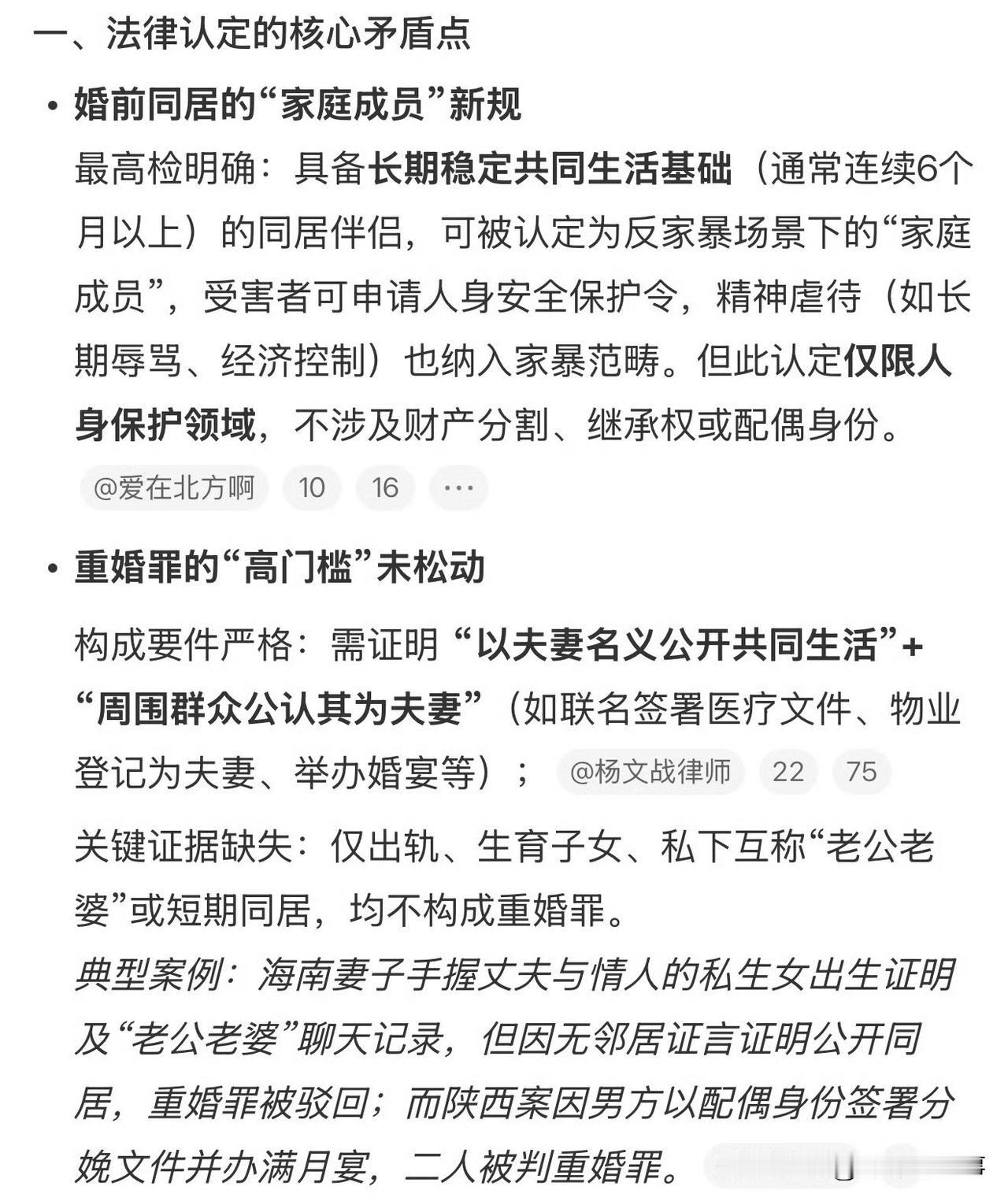 注意了!如果你知道对方是“有主”的,还跟TA同居,并且干了下面任何一件事:比如对外公开以“老公老婆”相称、办了婚礼或订婚仪式、甚至一起去拍了婚纱照……那你很可能就踩了“重婚罪”的法律红线! 所谓“重婚罪”,说白了就是两种情形:1. 你自己有配偶,还跑去跟别人再结一次婚(或事实婚姻);2. 你明知别人有配偶,还非要跟TA结婚或一起过日子。 婚前同居 婚前同居合法性 重婚取证