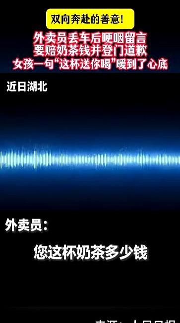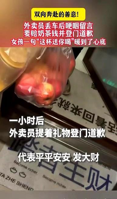 “看哭了!”11月20日晚上,湖北武汉外卖员赵师傅遇到件棘手事,他刚在餐厅取完餐,回头就发现停在路边的电动车不见了,手里提着要配送的餐食,他顿时陷入两难。[给你小心心] 赵师傅第一时间联系了顾客,说明车辆被盗的情况,他原本已经做好被投诉的准备,没想到电话那头的回应完全出乎意料。 对方听说后反而安慰他,让他先安心找车,不用着急送餐,更不用赔偿餐费。 这个回应让赵师傅格外过意不去,他决定无论如何都要把餐送到,提着餐盒他先是步行,后来又转乘其他交通工具,足足走了五点六公里,终于来到顾客小区门口。 去的途中,他还特意自费买了苹果和奶茶作为答谢,当顾客打开门时,先问的是“车找到了吗”,看到赵师傅满头大汗的样子,连忙请他进屋休息。 这段经历被顾客分享到网上后,引发了广泛关注,外卖平台得知此事,很快为赵师傅配发了全新的电动车,并发放了两千元特别奖励,表彰他在困境中依然坚守职责的敬业精神。 更巧的是没过几天,派出所通知赵师傅,他被盗的电动车已经找到了,这件事就这样迎来了圆满的结局。 对于这位骑手的敬业精神和顾客的暖心言行后,网友们展开了讨论。 一位老骑手说,“自己送餐三年,遇到过各种突发状况,但大多数顾客都是通情达理的。” “看到这个新闻,真的被这份双向奔赴的善意打动了,骑手丢了吃饭的家伙——电动车,第一反应不是抱怨,而是想着不能耽误顾客,主动要求赔偿,这份责任心在现在真的太难得了。” “更难得的是那位顾客的通情达理,听到骑手带着哭腔,不但没责怪,反而安慰他说不必赔偿,将心比心,要是我们自己遇到这种情况,可能多少会有点不高兴,但这位顾客的选择,真的体现了什么是将心比心。” “最让人动容的是骑手后来的举动,车还没找到,他居然想办法赶了5公里多路,还自掏腰包买水果和奶茶上门道歉,这说明他是真的把这份责任和顾客的善意放在心上了,这种“你敬我一尺,我敬你一丈”的相处方式,比什么都有力量。“ 如果你们是这位顾客,遇到同样的情况,会接受骑手的赔偿吗?还是会像新闻里这样选择谅解? 信源:人民日报